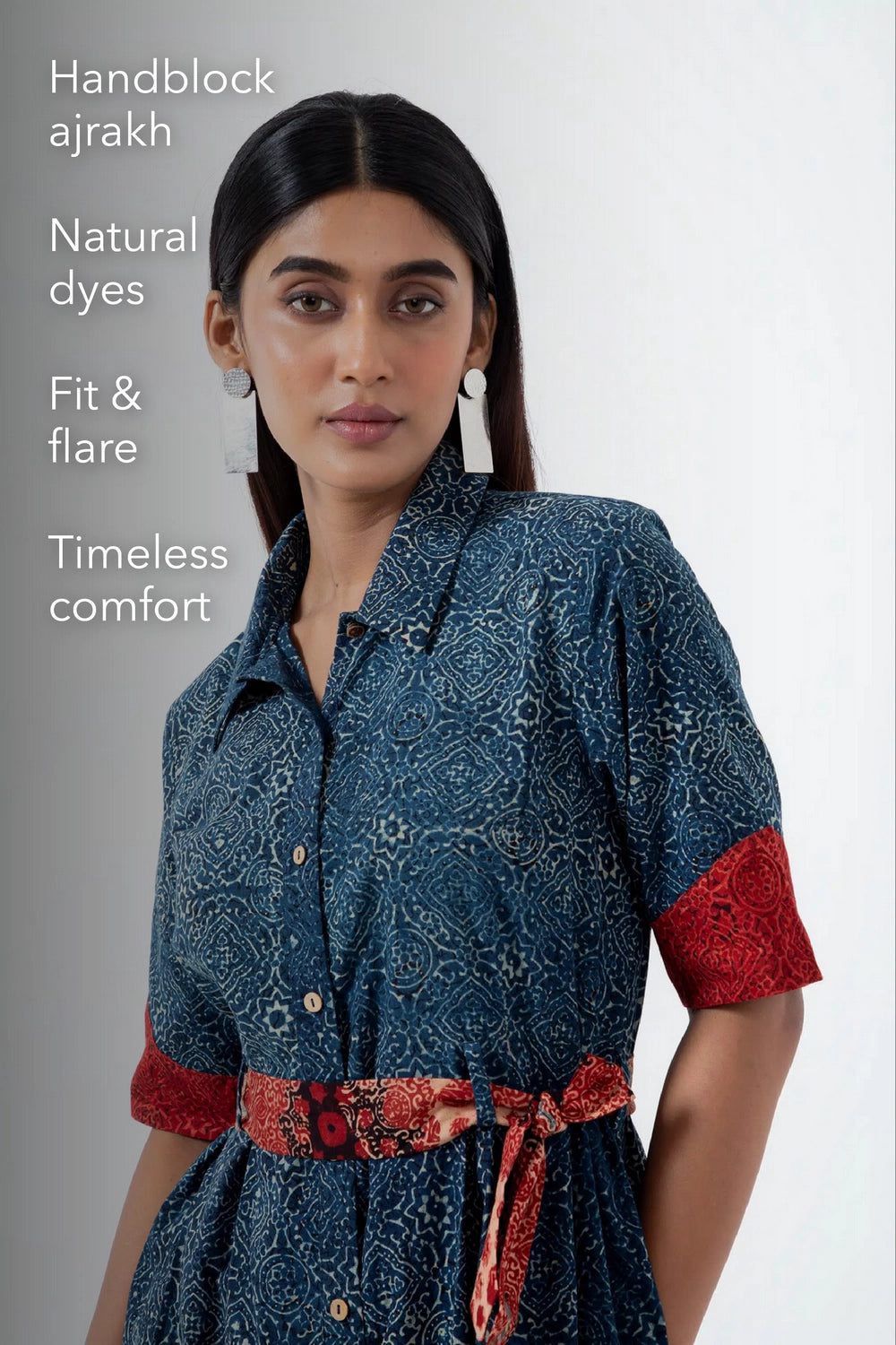 Fabric: Co-designed in Gujrat with generational Ajrakh artisan- Tosif Khatri