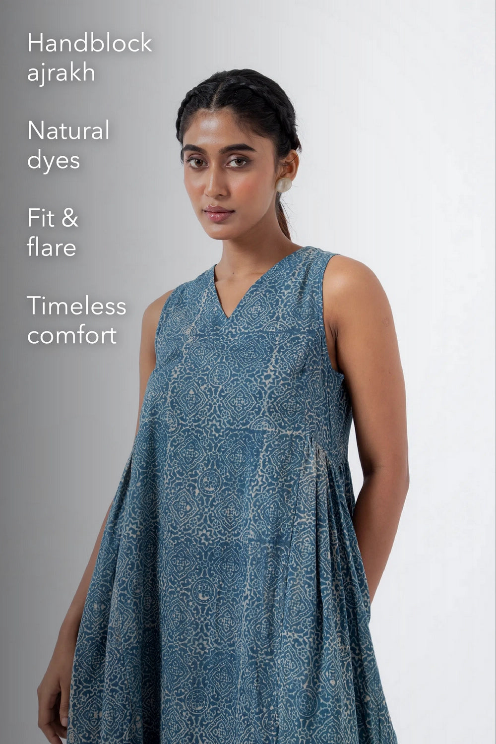 Fabric: Co-designed in Gujrat with generational Ajrakh artisan- Tosif Khatri