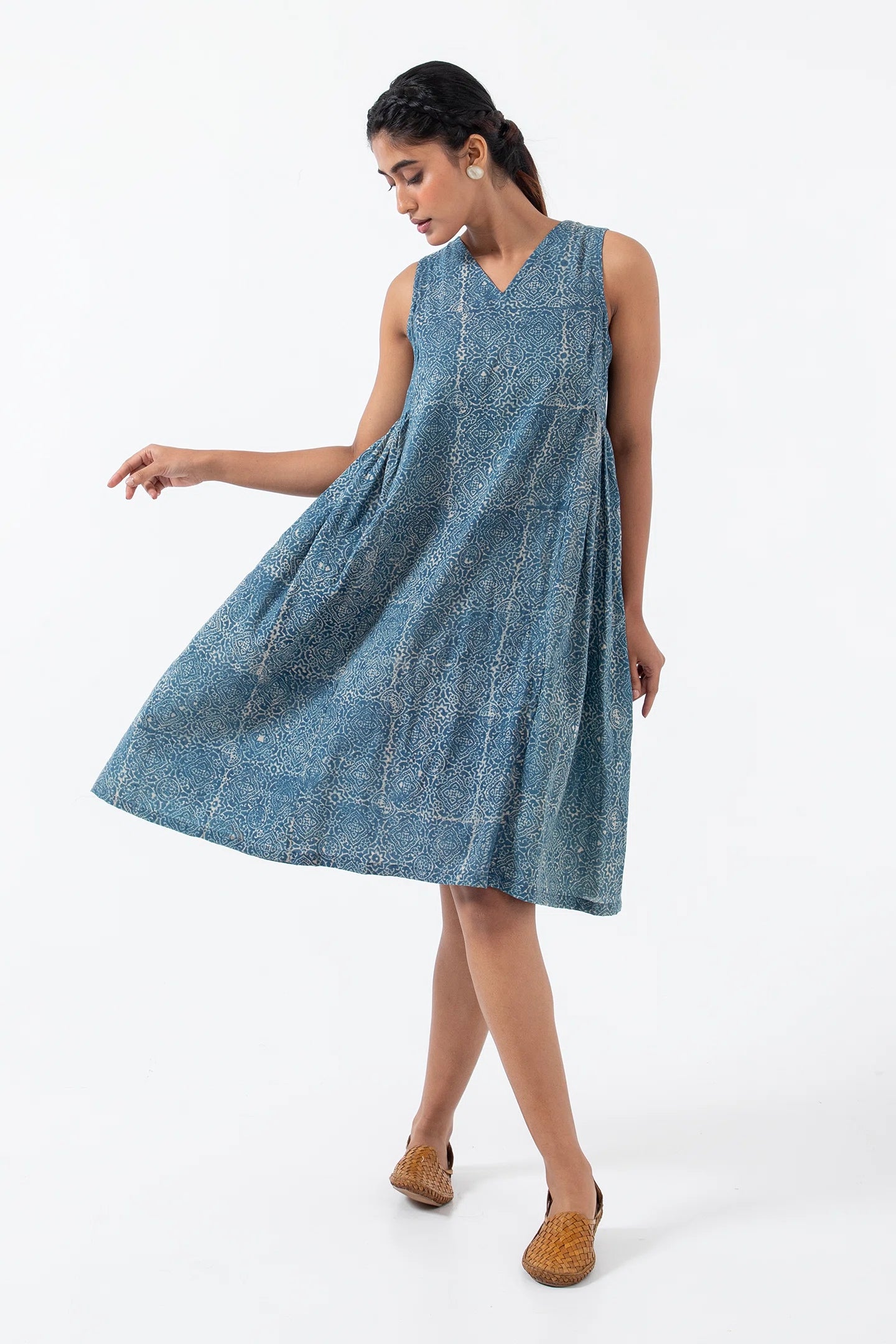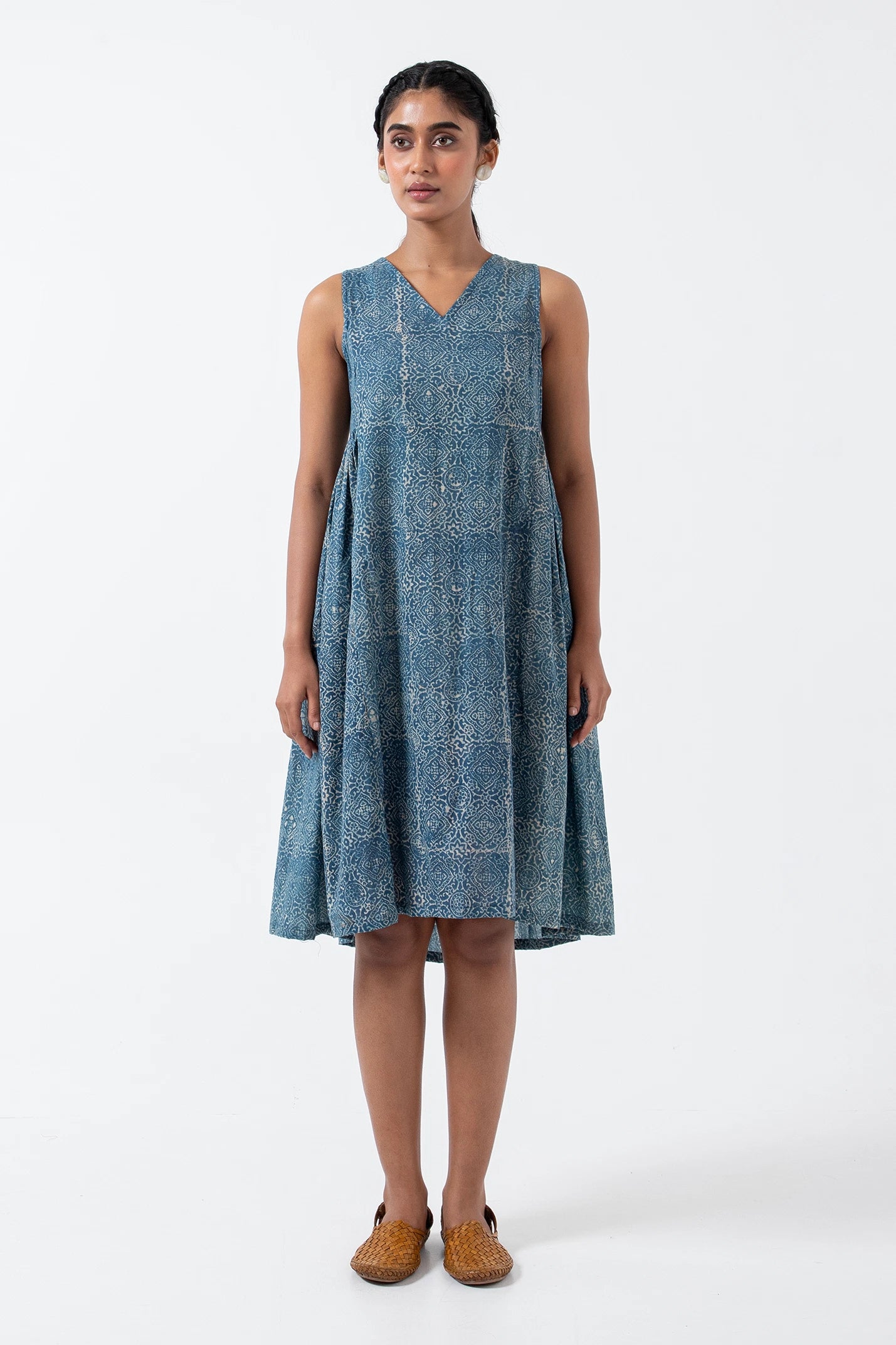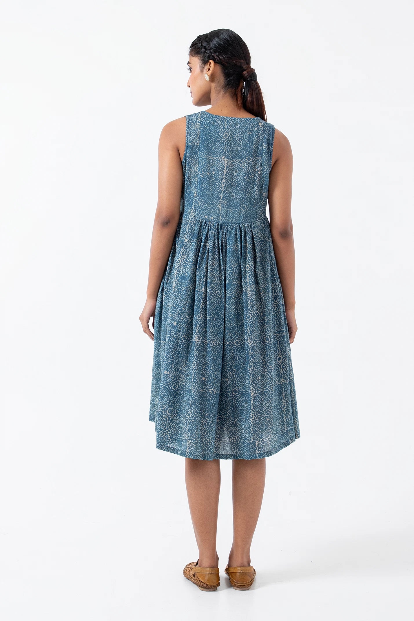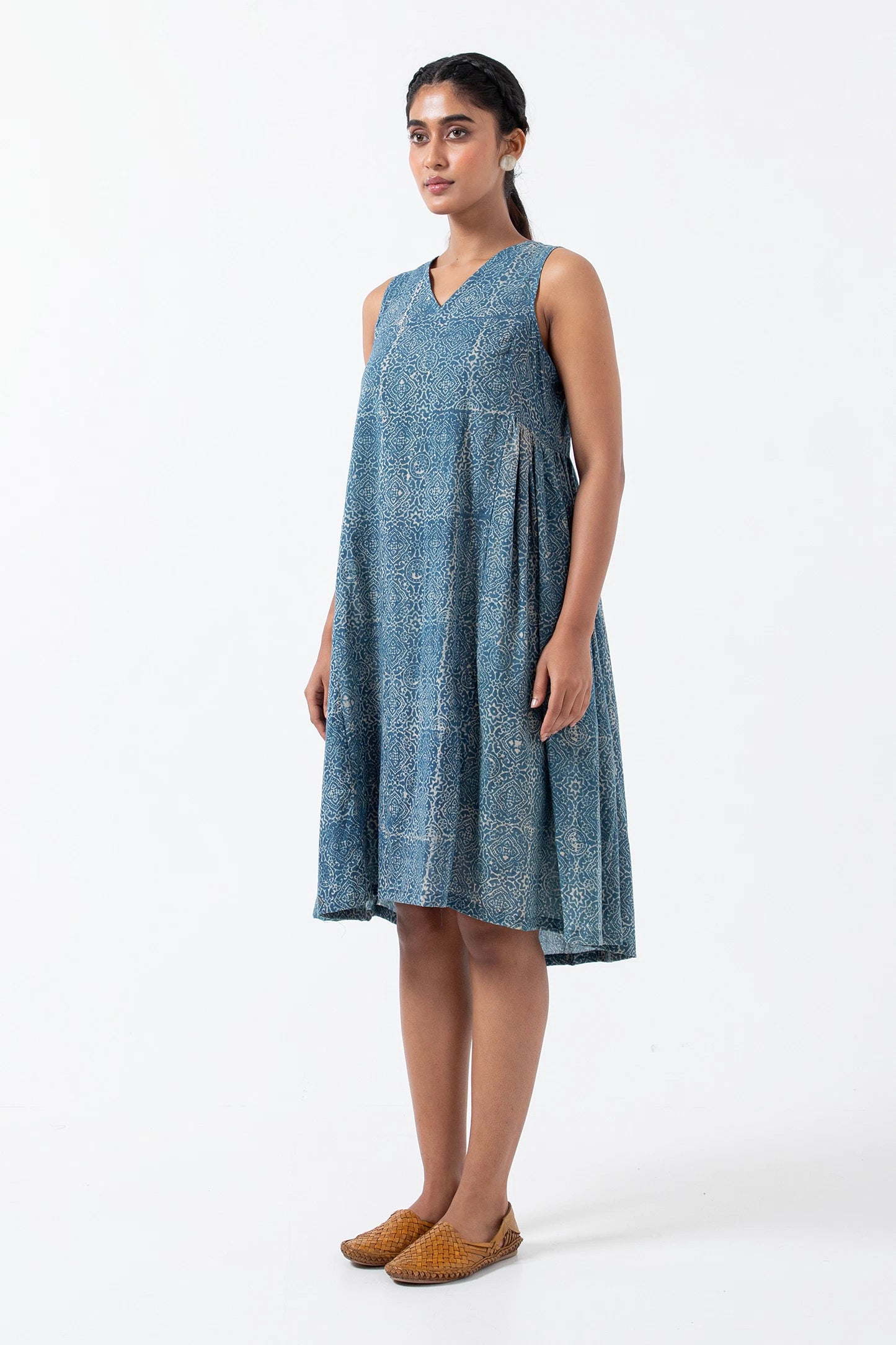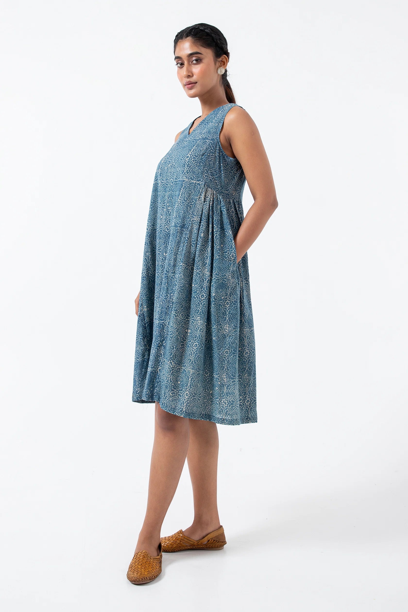 Block printed Indigo Skyline Sunday Dress