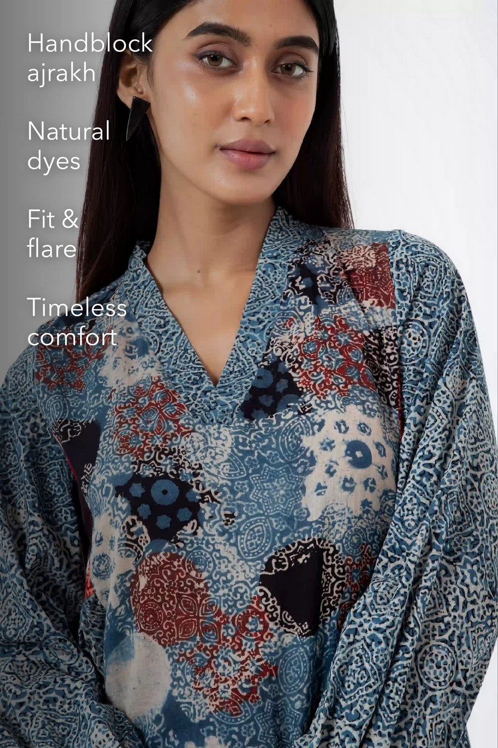 Fabric: Co-designed in Gujrat with generational Ajrakh artisan- Tosif Khatri
