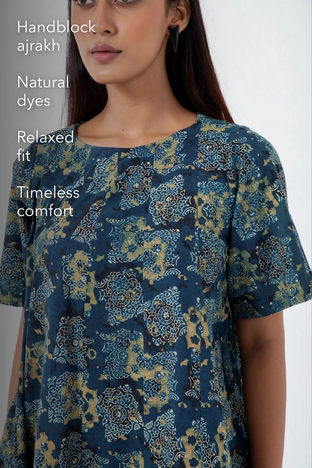 Fabric: Co-designed in Gujrat with generational Ajrakh artisan- Tosif Khatri