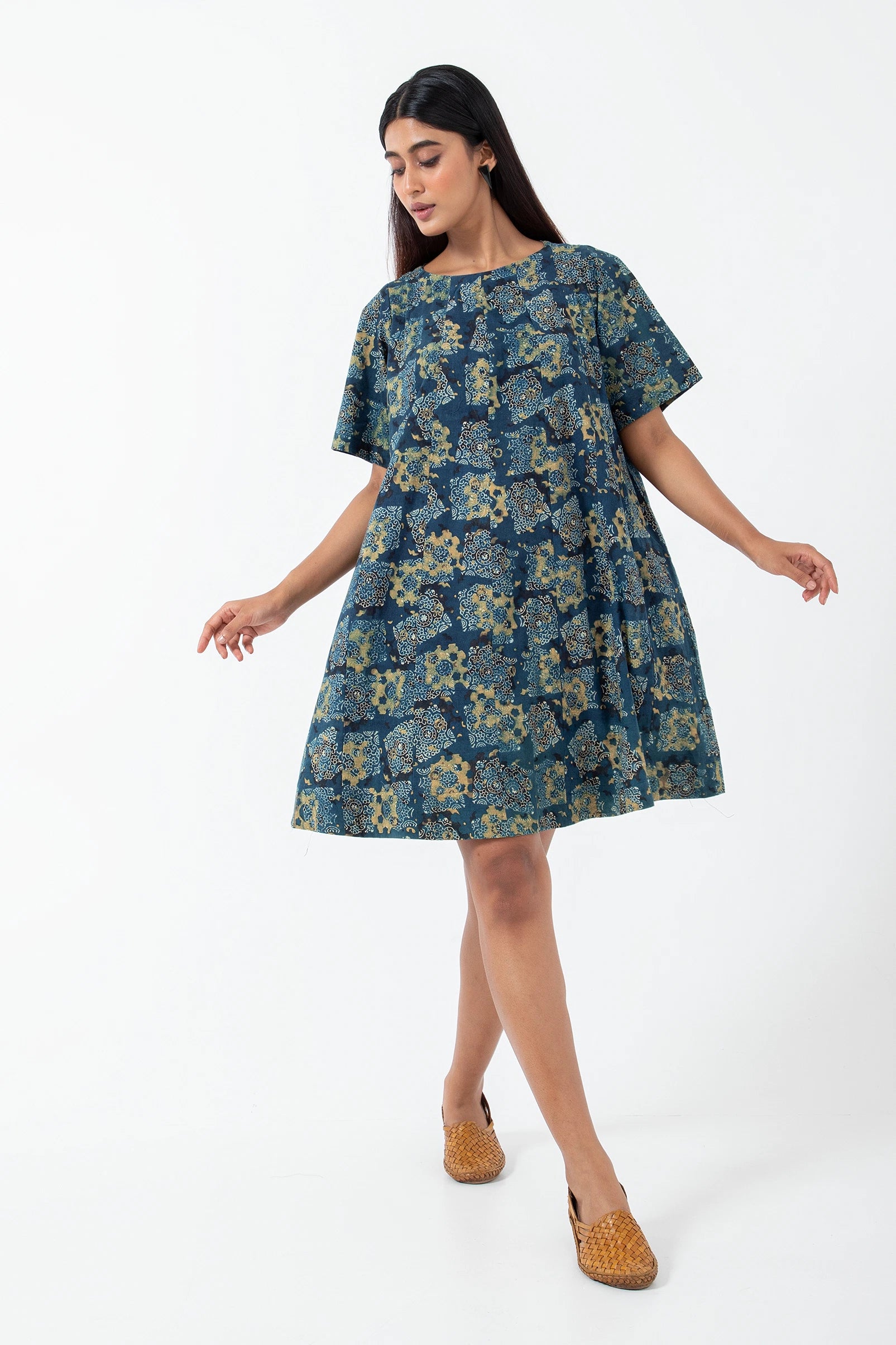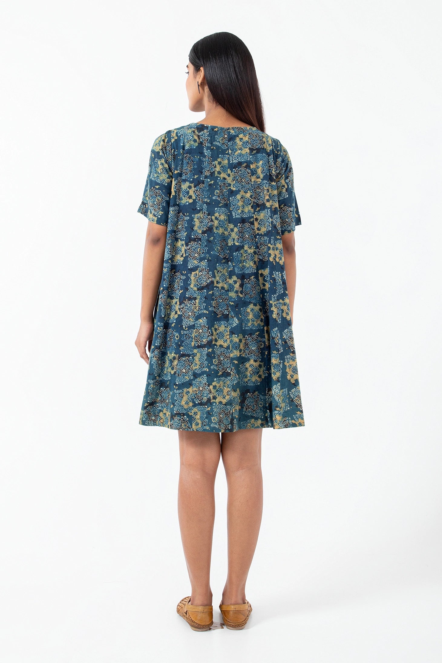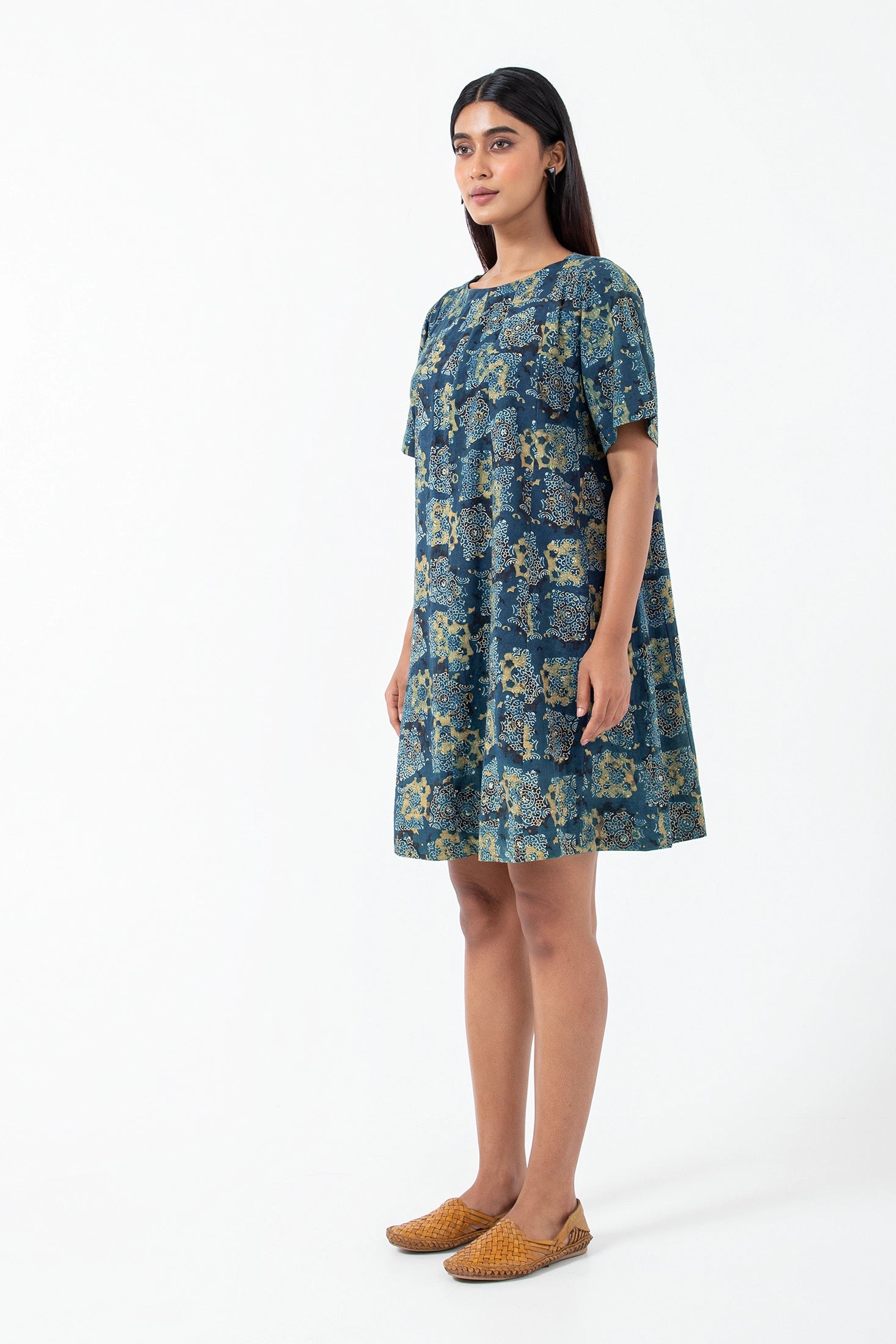 Key Feature: This dress features zero-waste pattern. Its 'kali' or panel adds flair to the relaxed fit, complemented by a boat neck, half sleeves, and convenient pockets for added functionality.