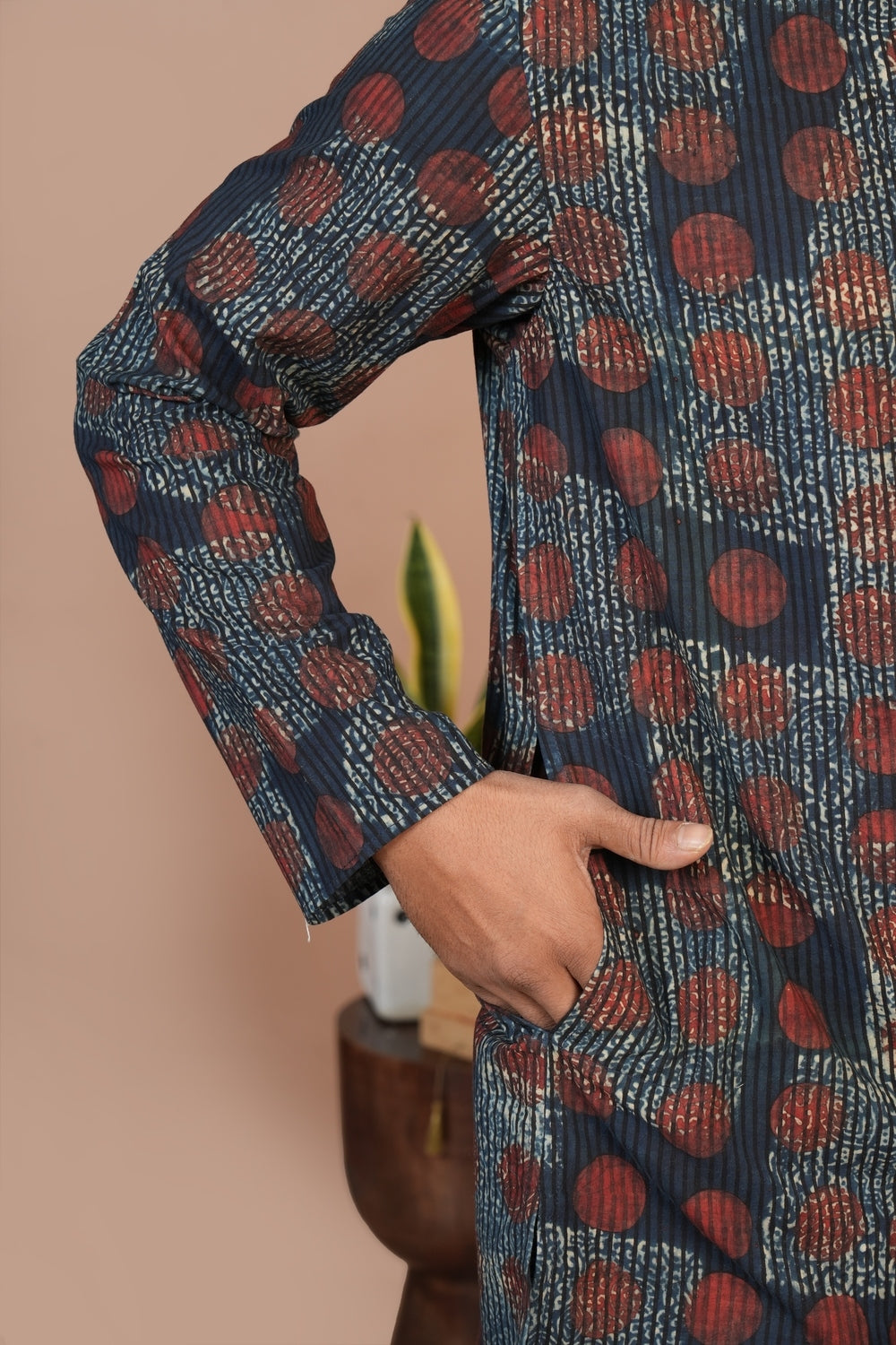 Hand Block Printed Ajrakh Allover Straight Kurta