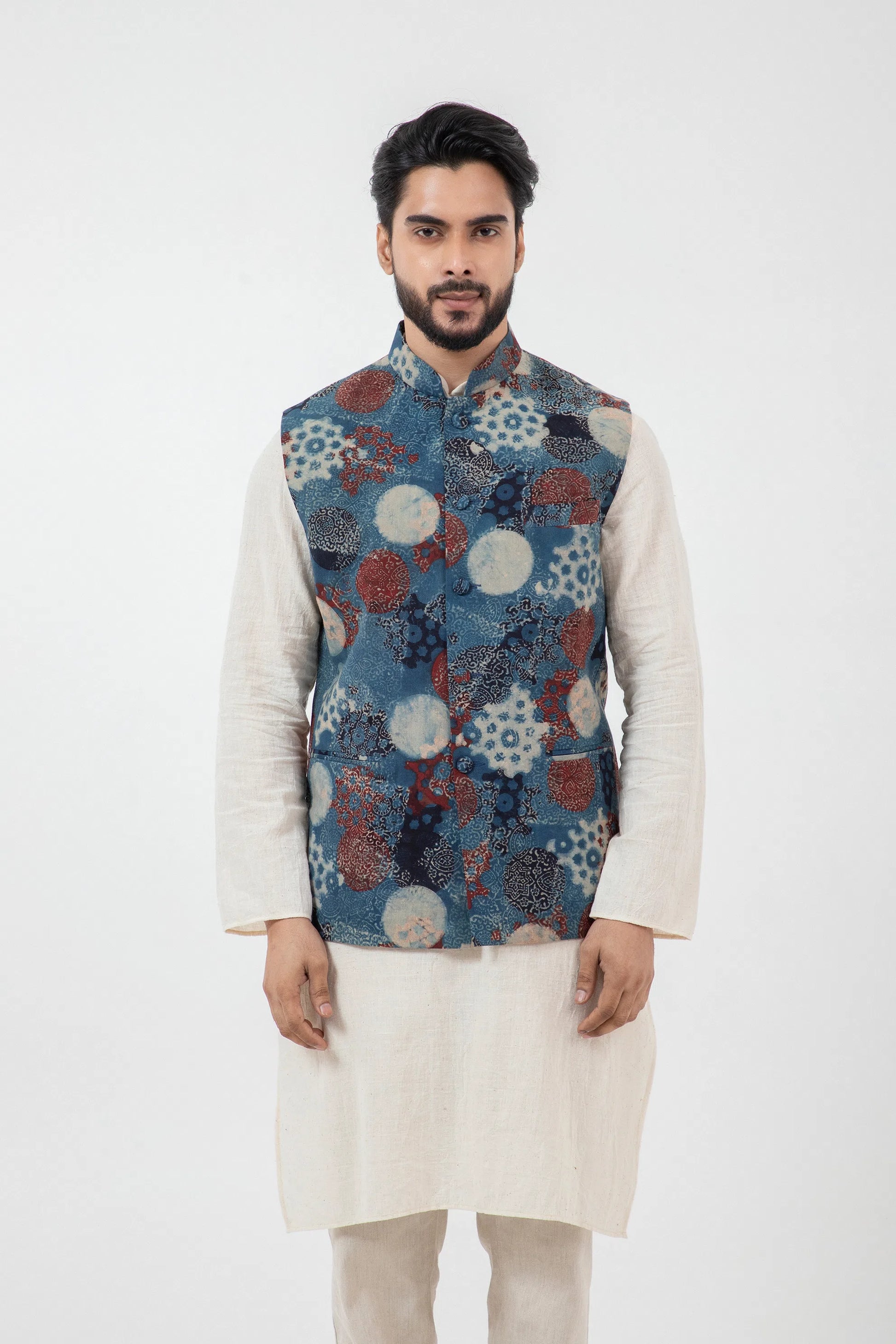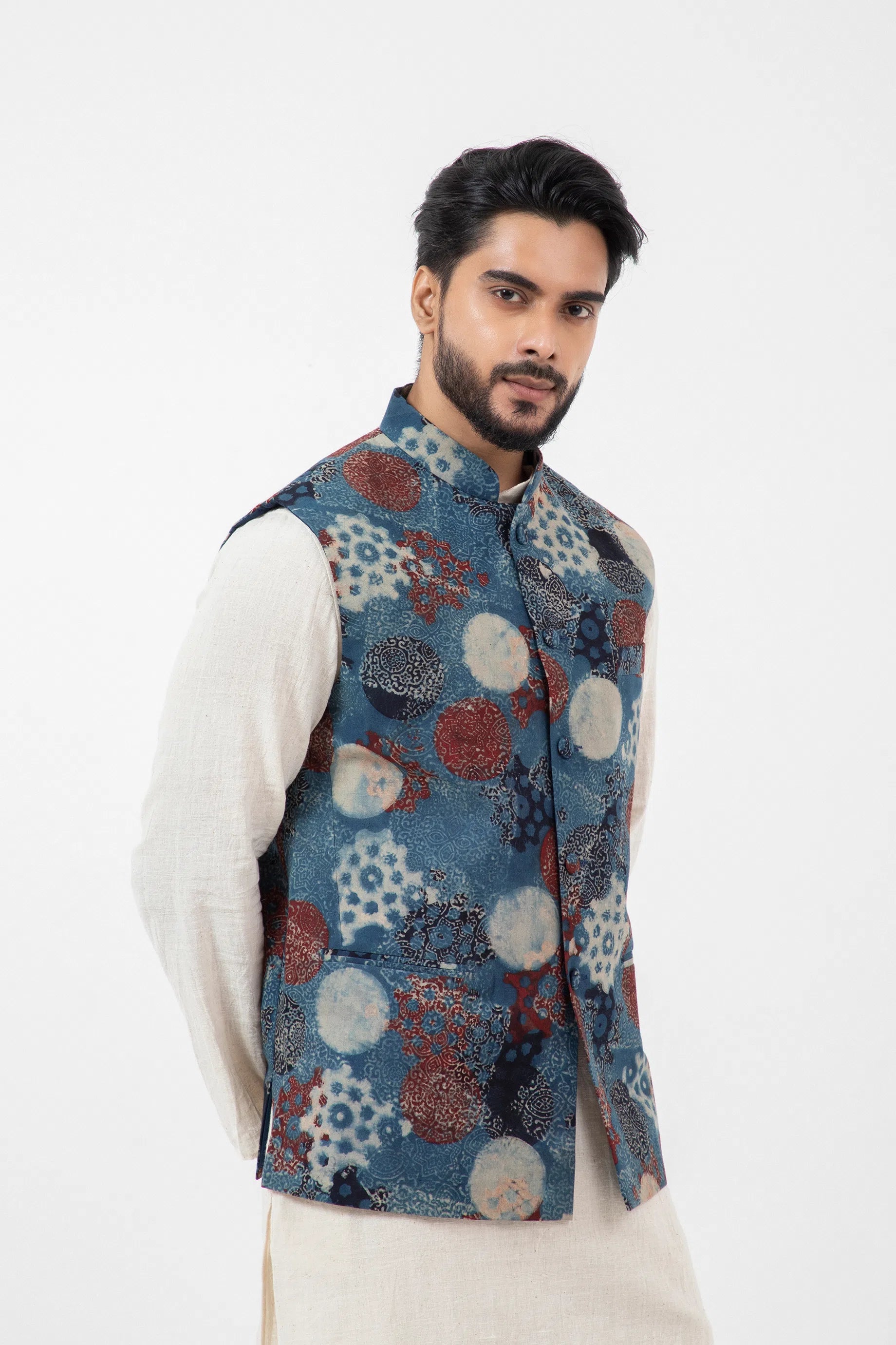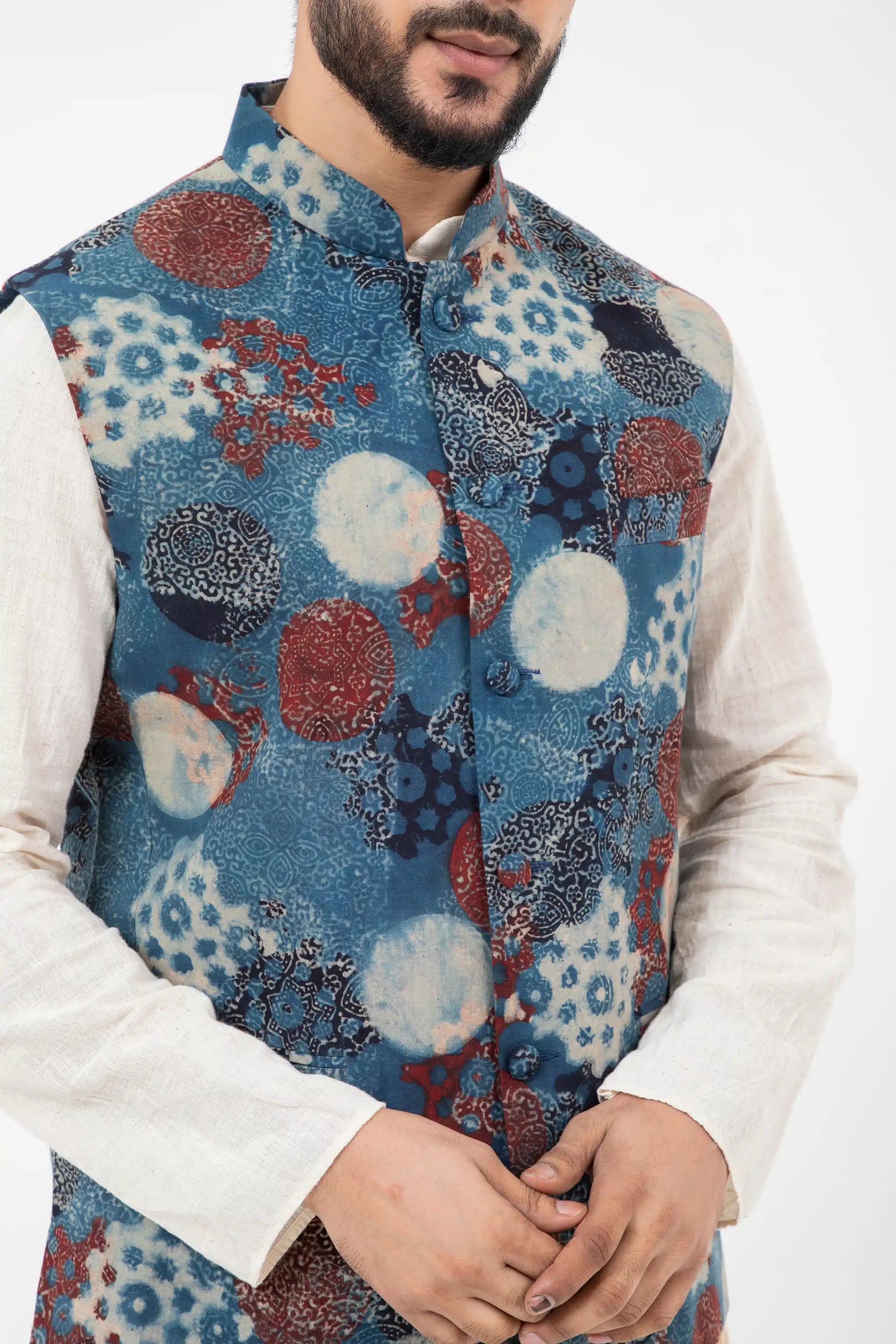Block printed Indigo Nehru Jacket
