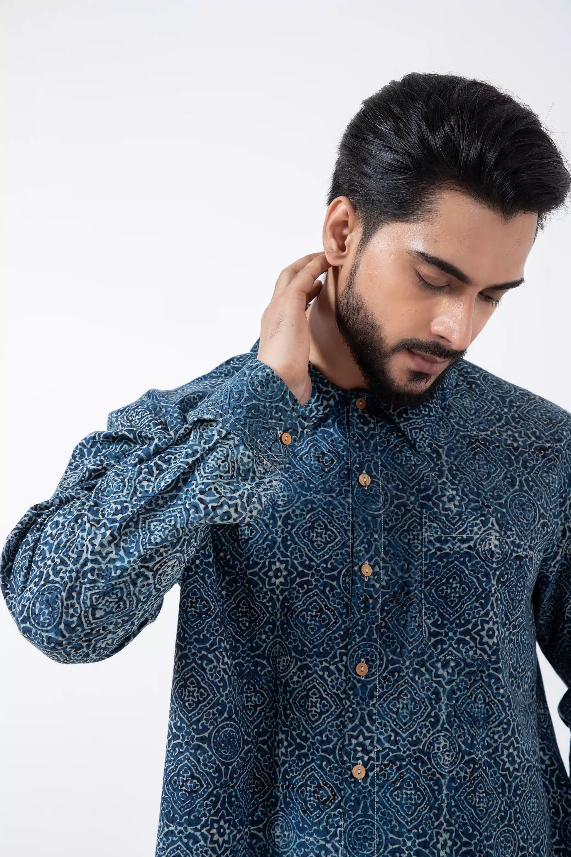 Fabric: Co-designed in Gujrat with generational Ajrakh artisan- Tosif Khatri