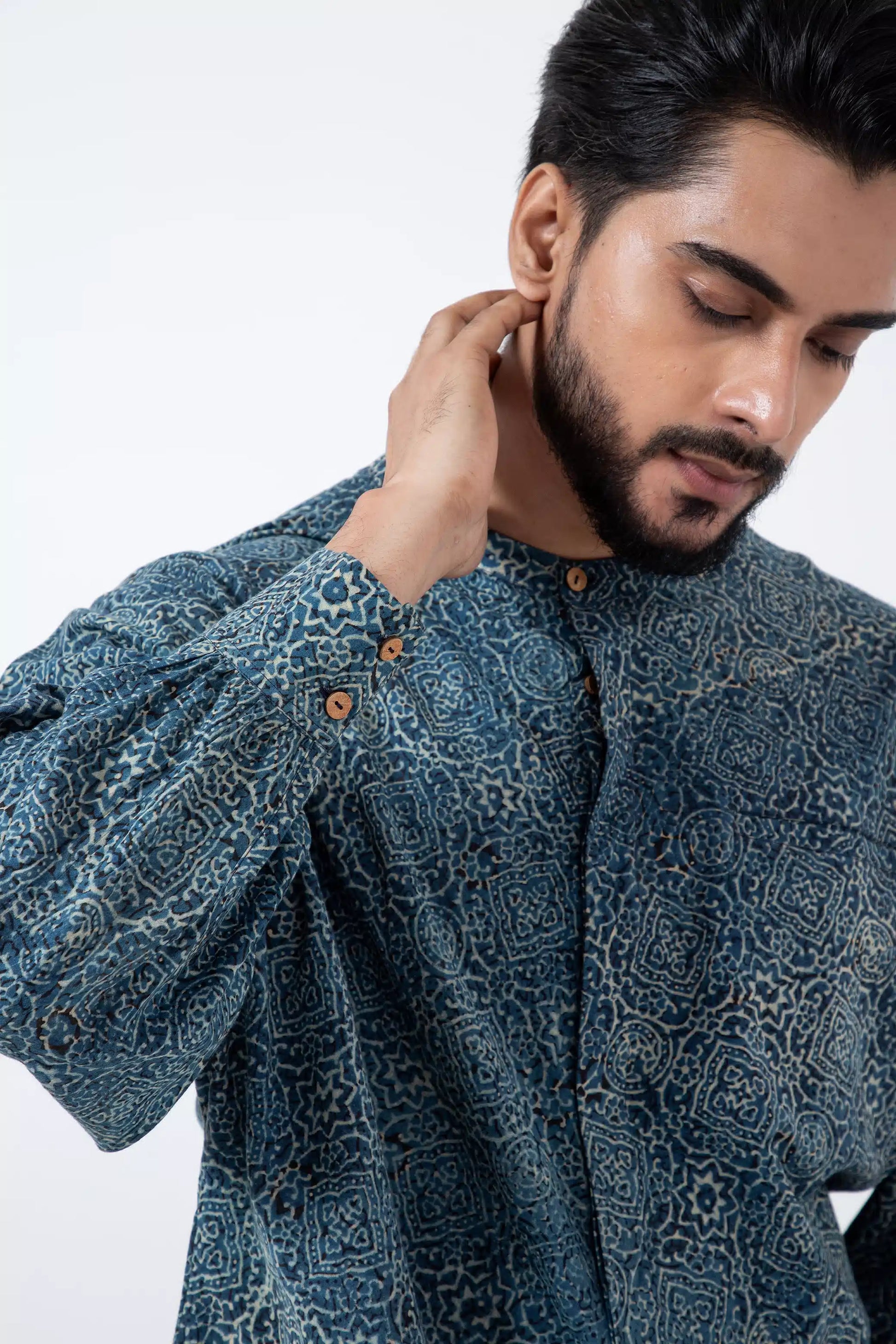 Fabric: Co-designed in Gujrat with generational Ajrakh artisan- Tosif Khatri