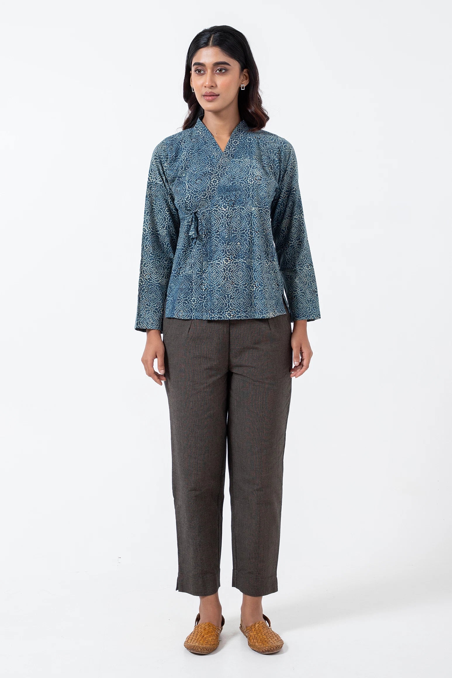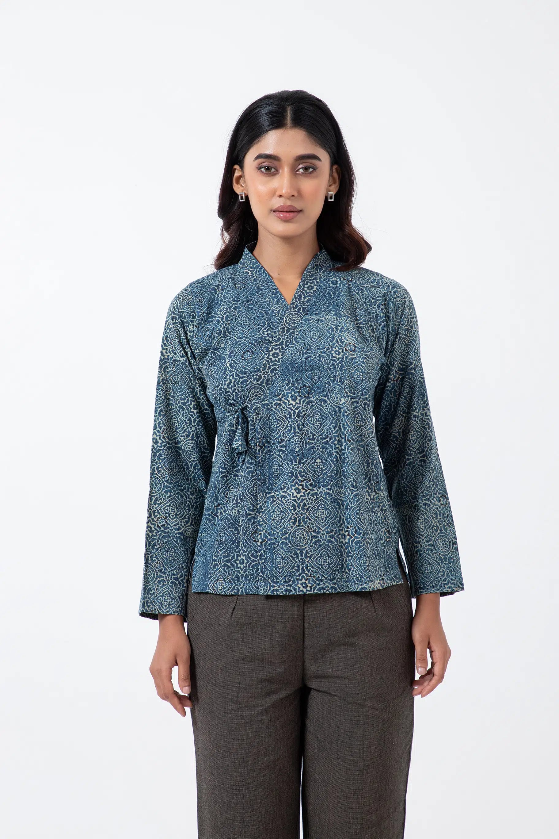 Key Feature: This is a wrap shirt. Its unique geometric cutouts are inspired by traditional Indian pattern marking which reduces fabric wastage.