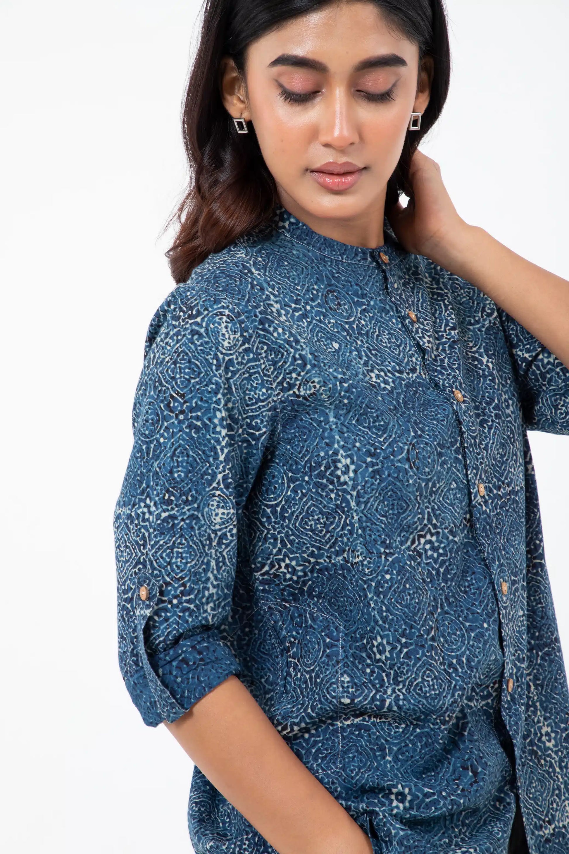 Fabric: Co-designed in Gujrat with generational Ajrakh artisan- Tosif Khatri