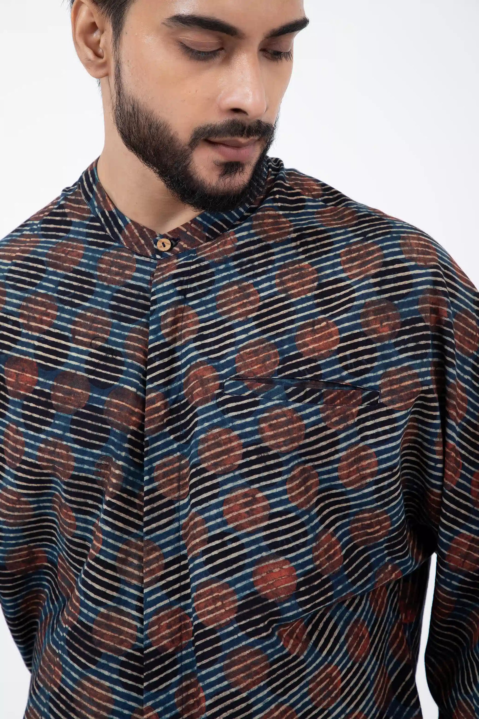 Fabric: Co-designed in Gujrat with generational Ajrakh artisan- Tosif Khatri