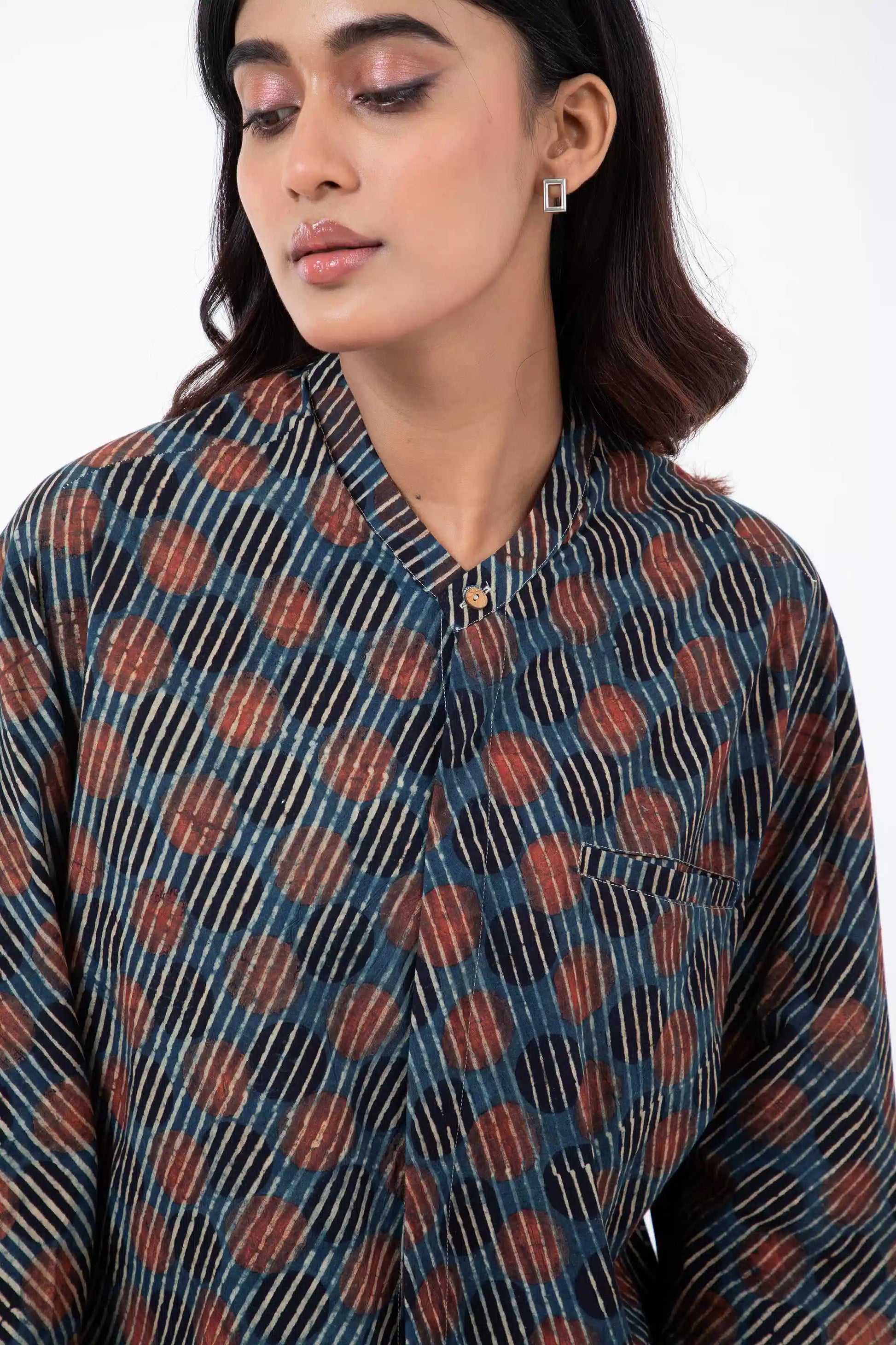 Fabric: Co-designed in Gujrat with generational Ajrakh artisan- Tosif Khatri