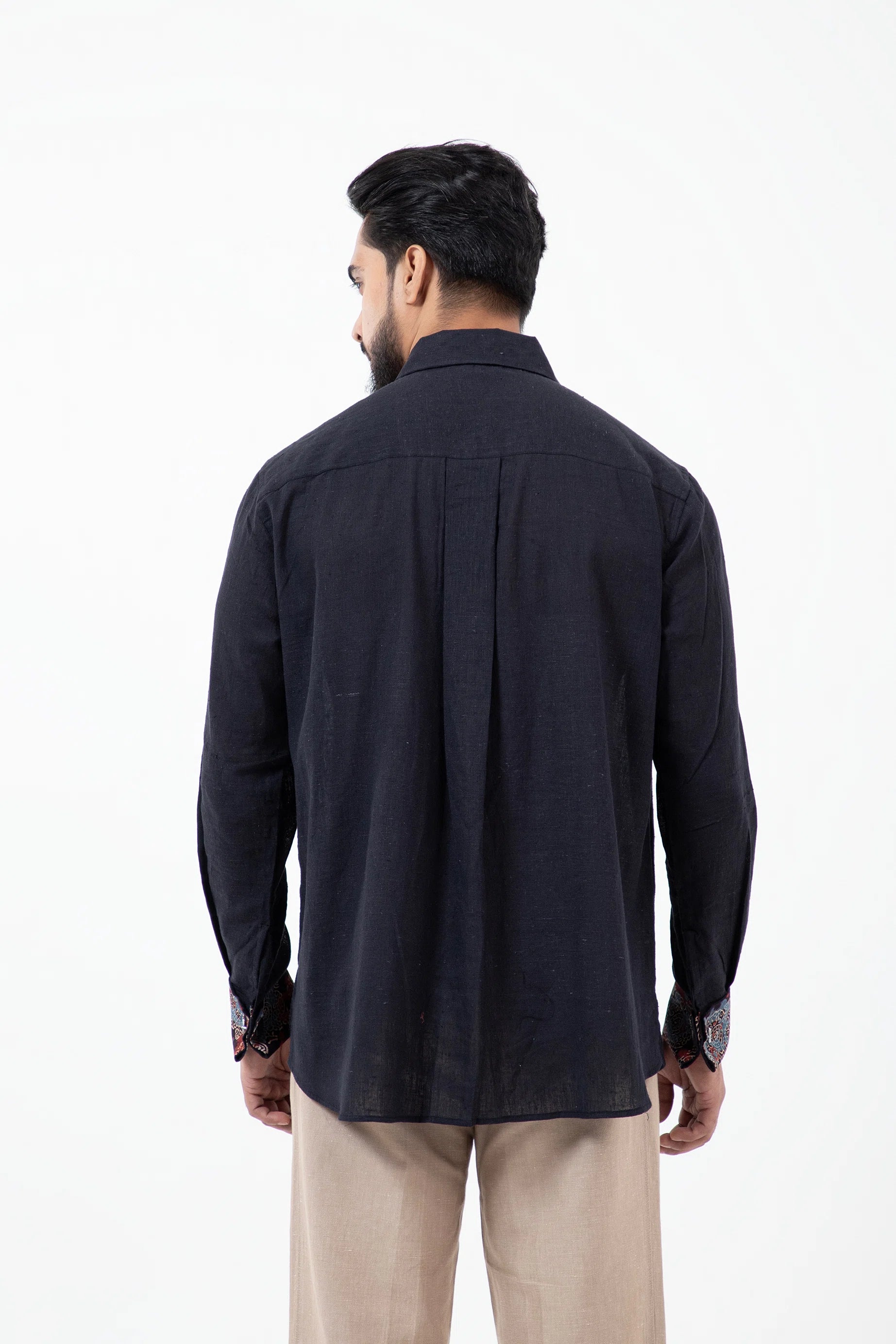 Key Feature: Classic oversized shirt with slight drop shoulders, a side slit, and a redesigned collar for a distinct appearance. It has a reversible cuff with contrast fabric.