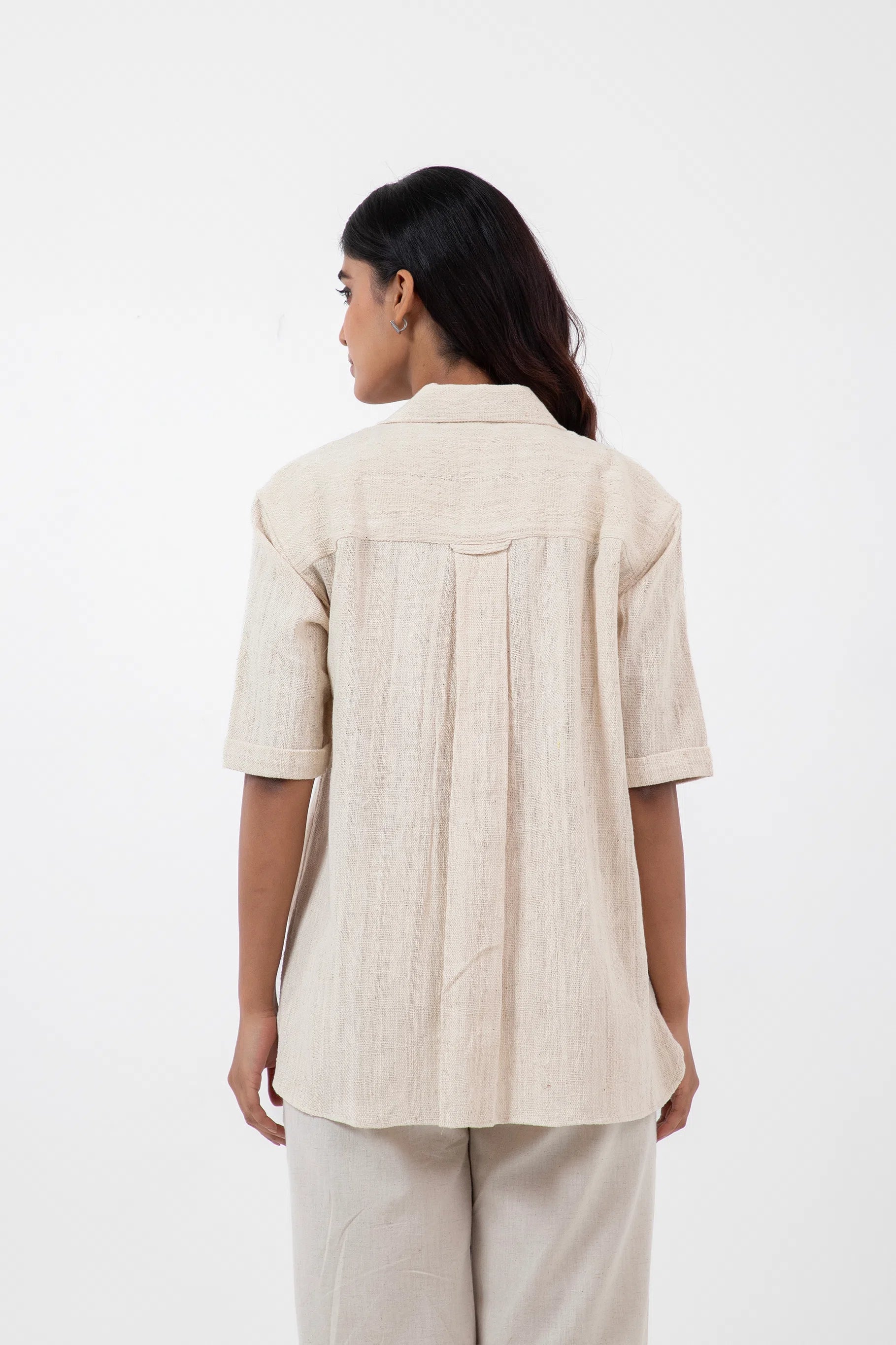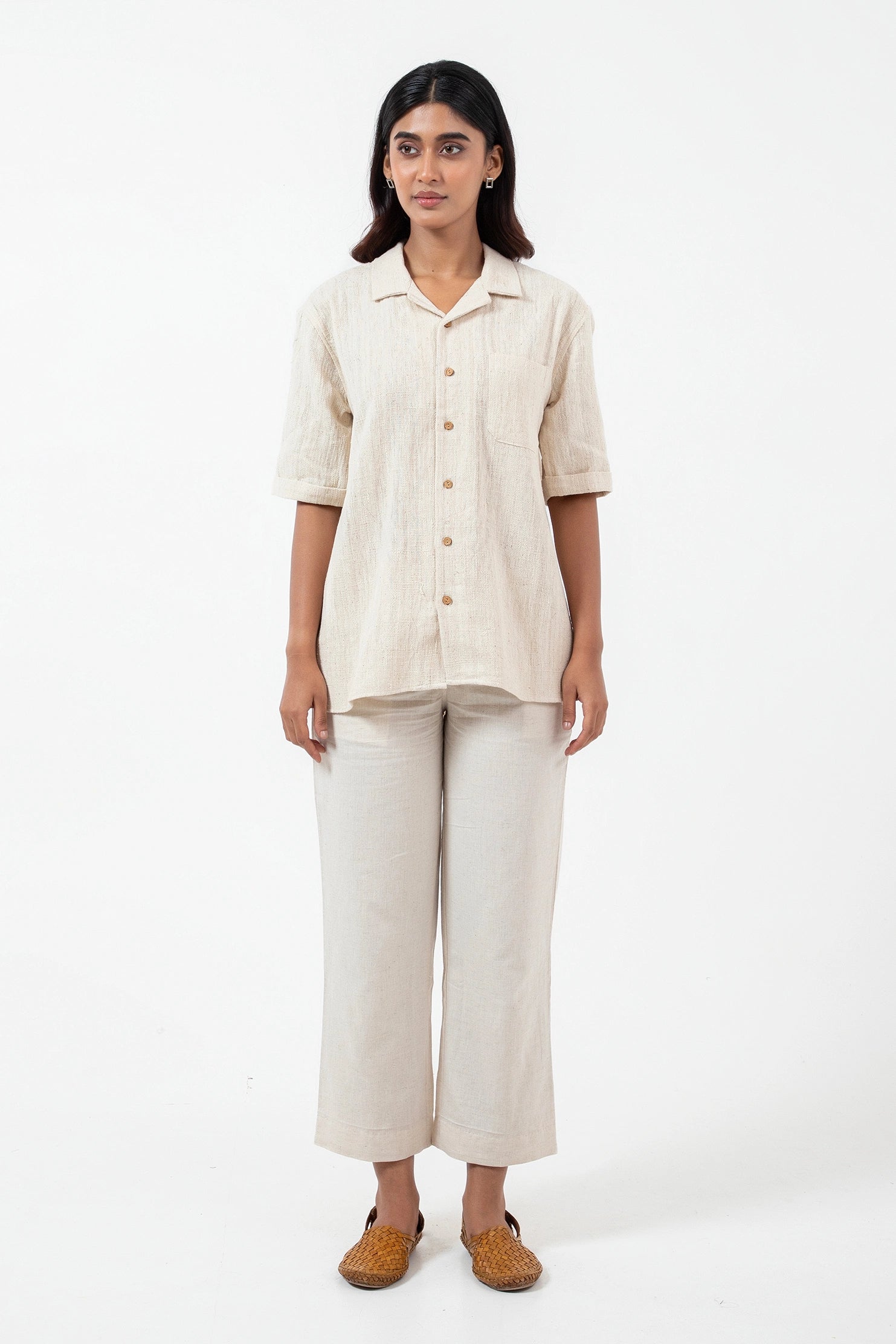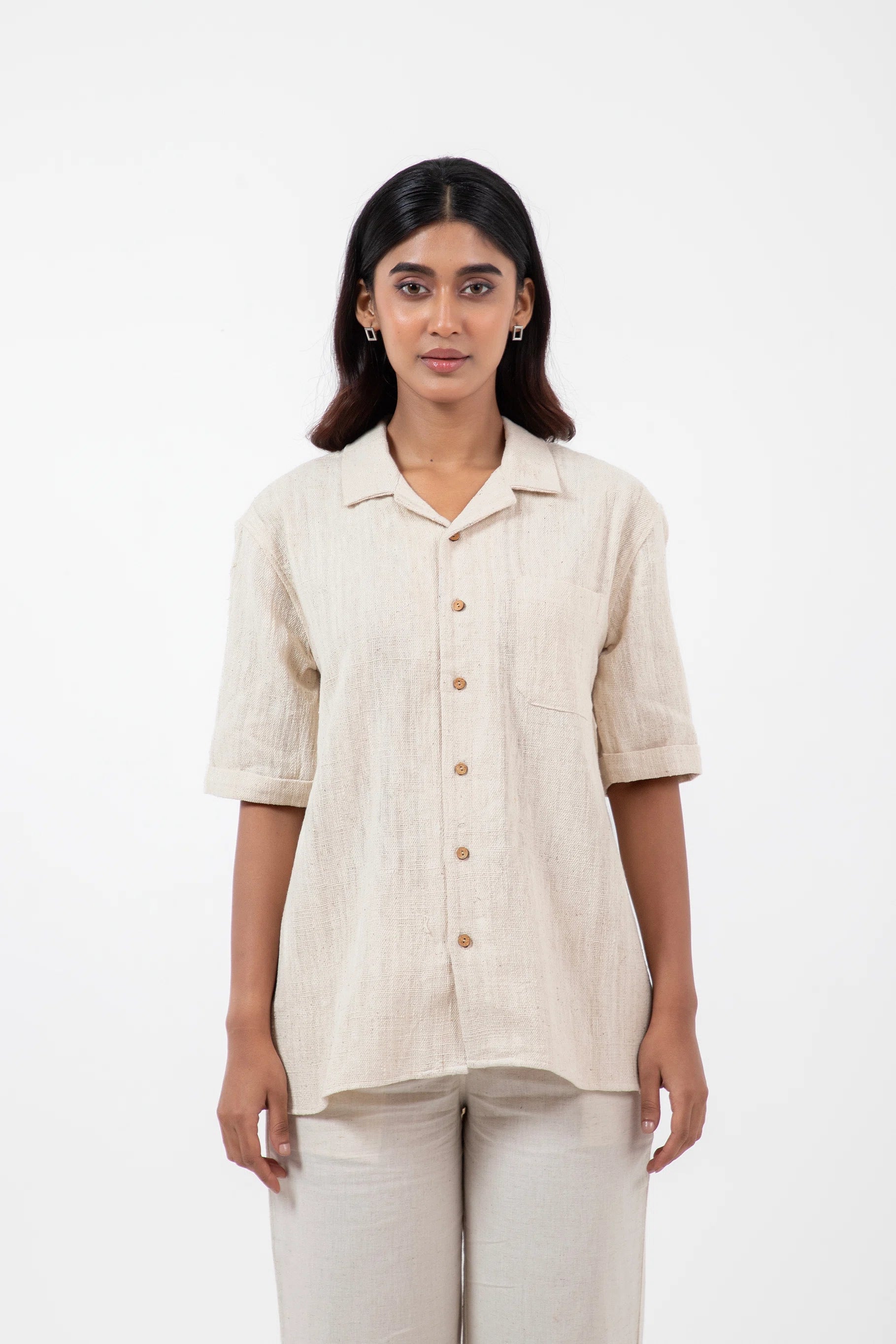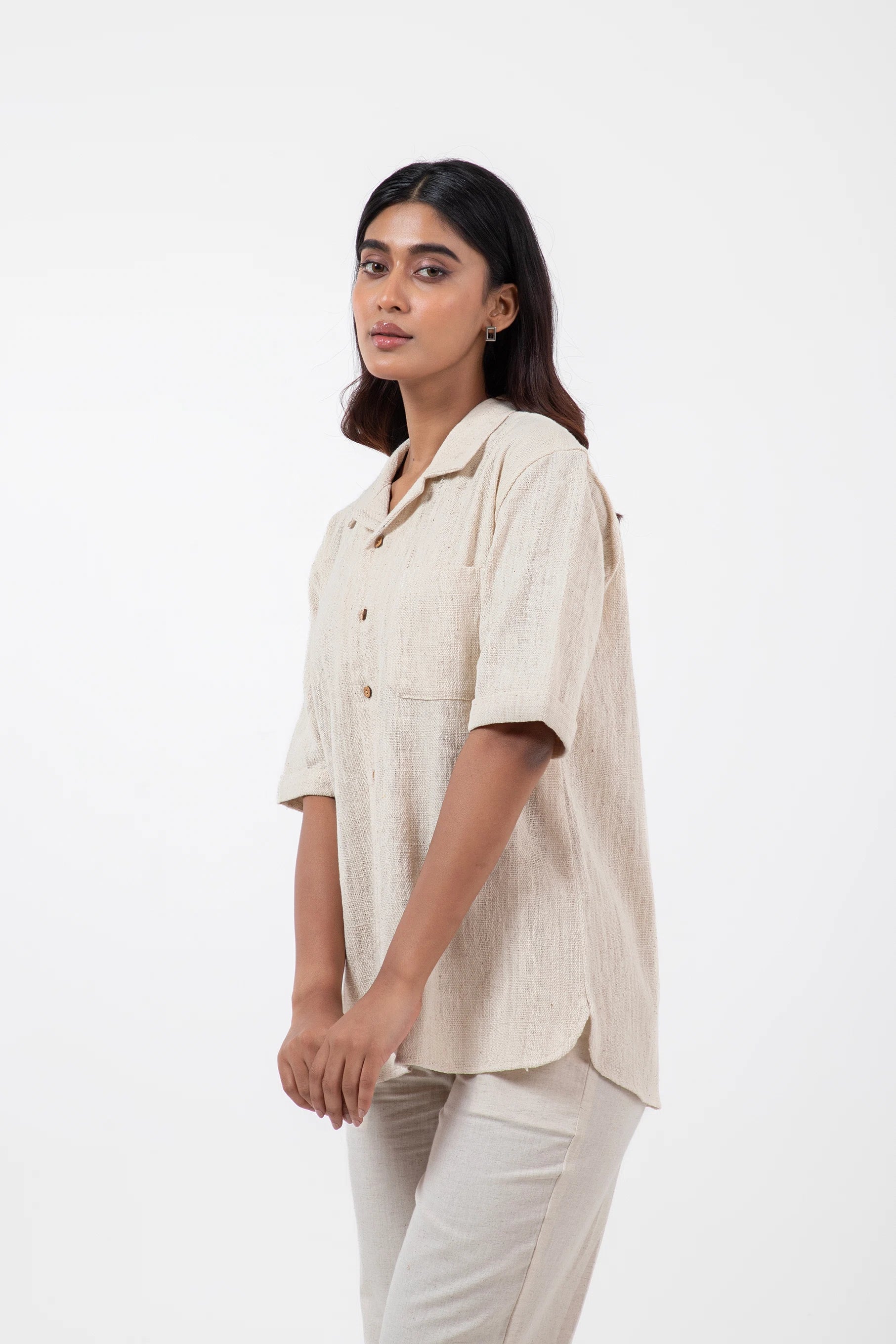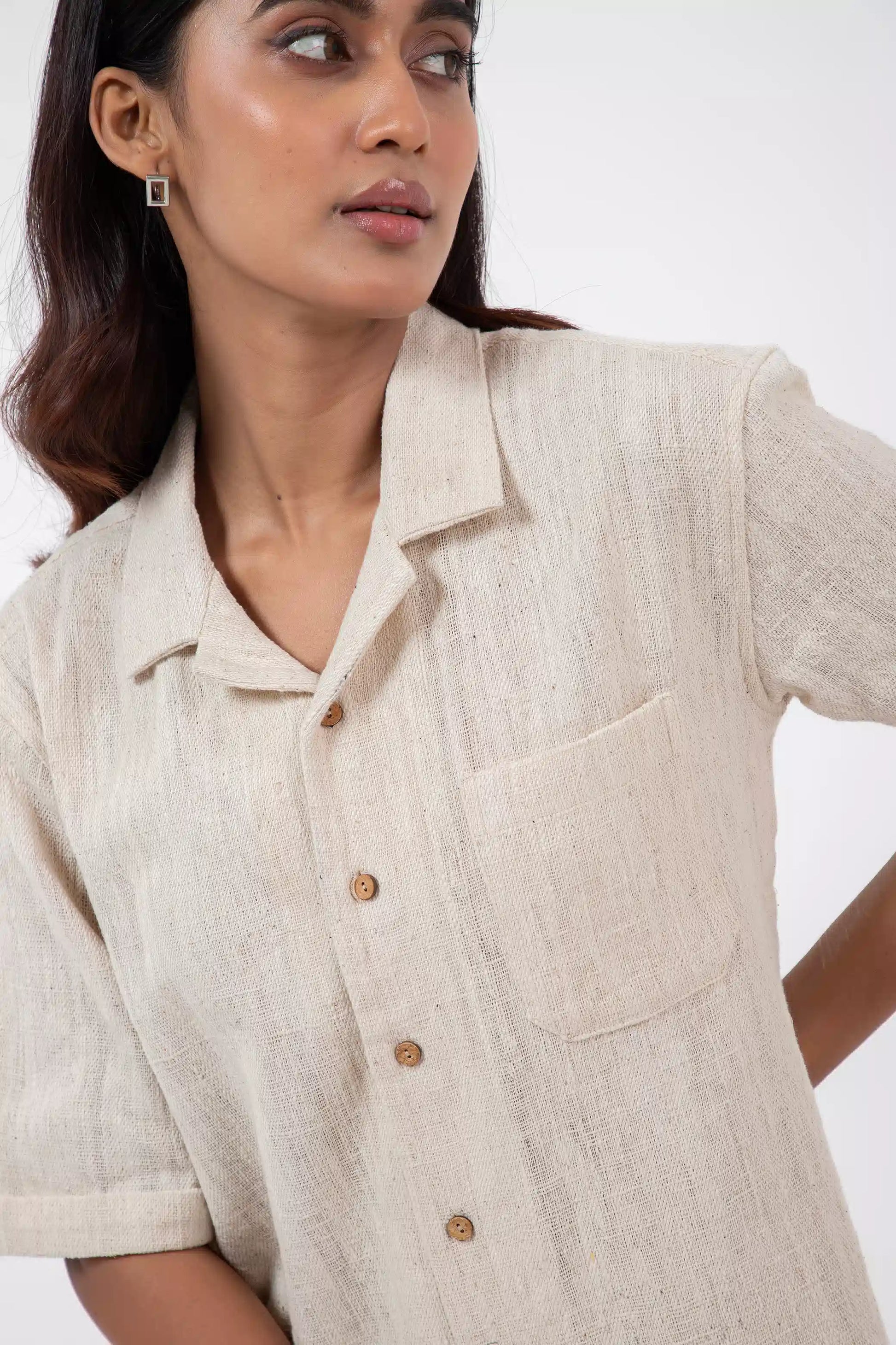 Key Feature: A classic camp collar shirt with relaxed half-sleeves and a patch pocket.