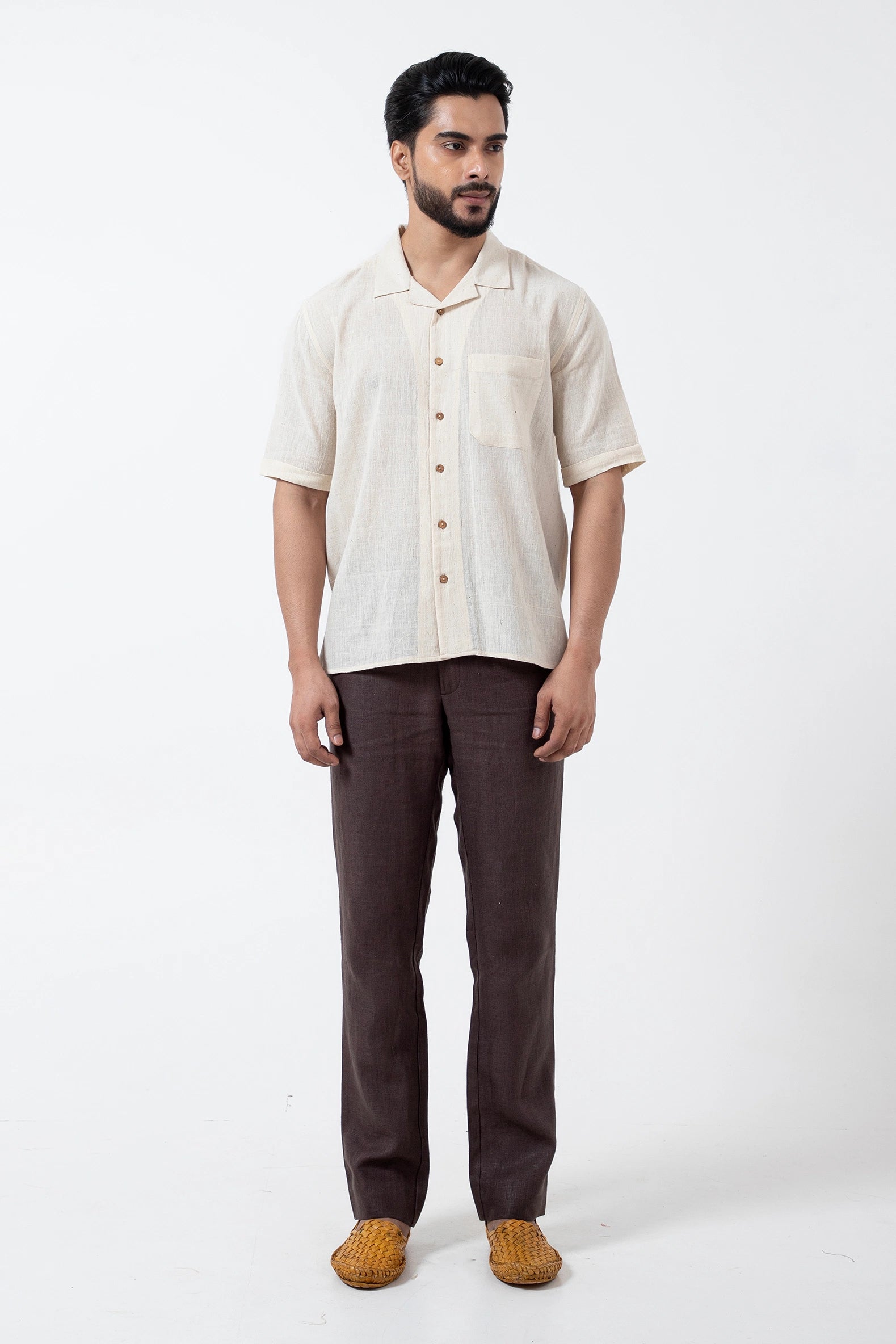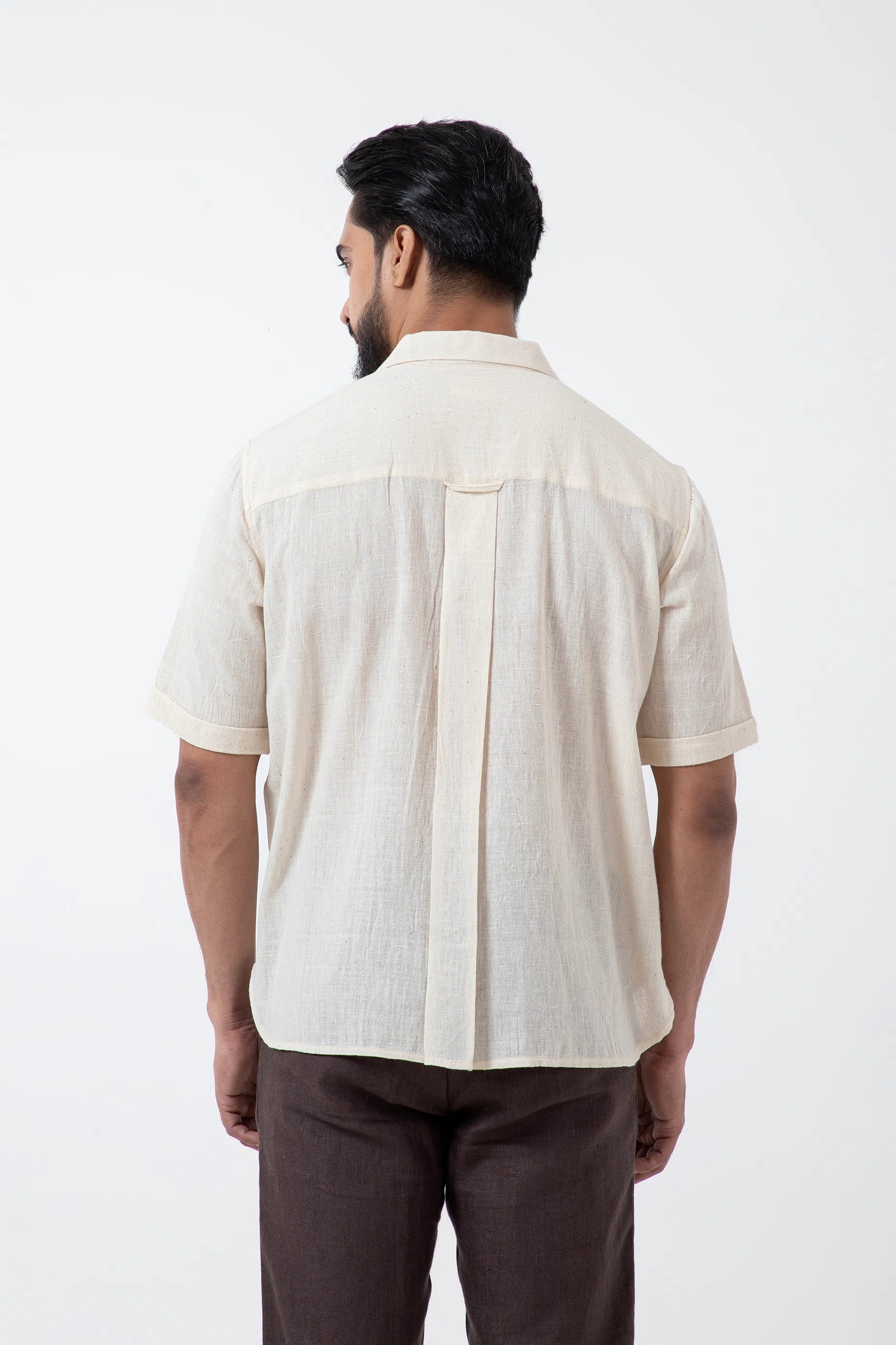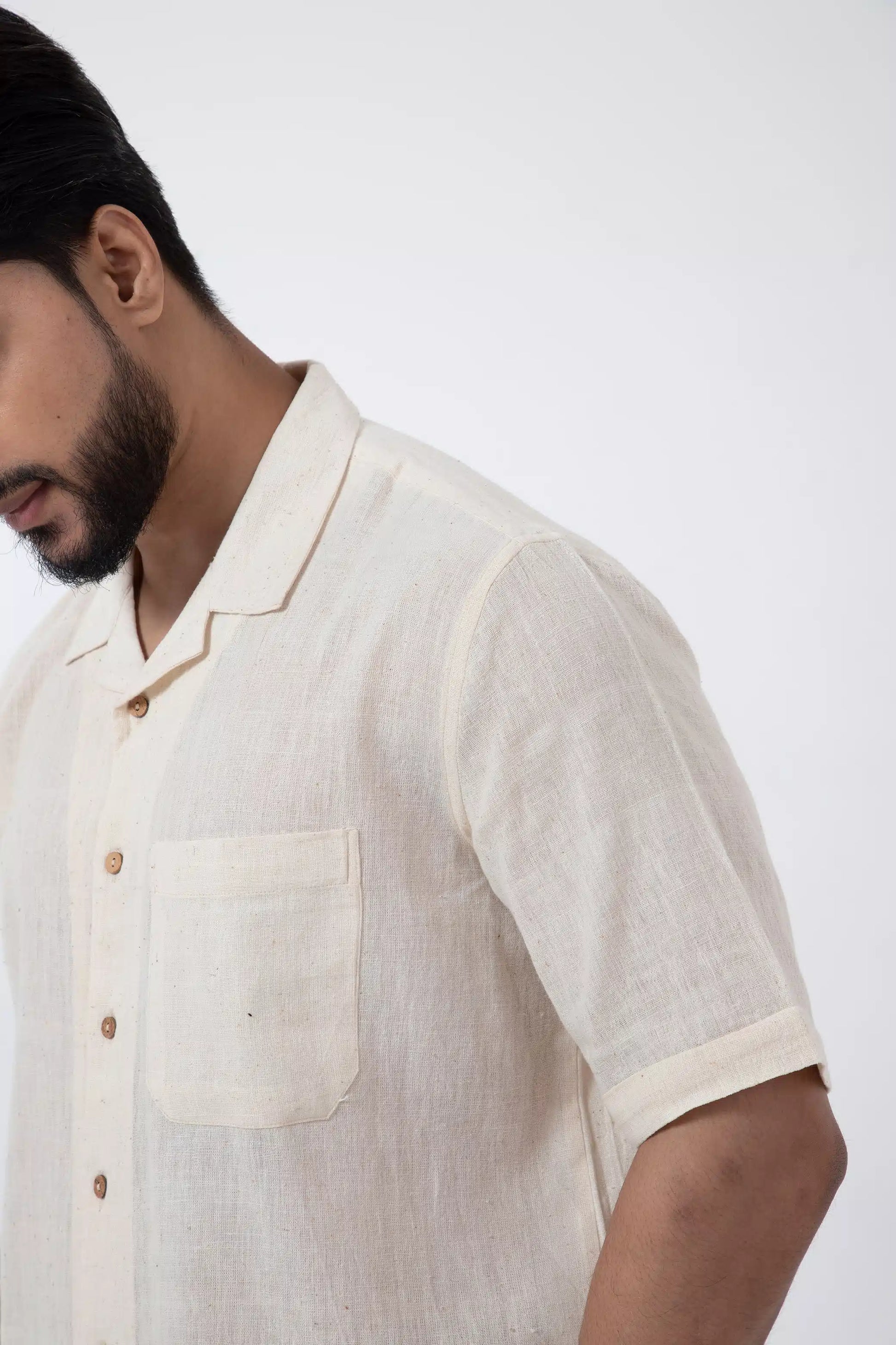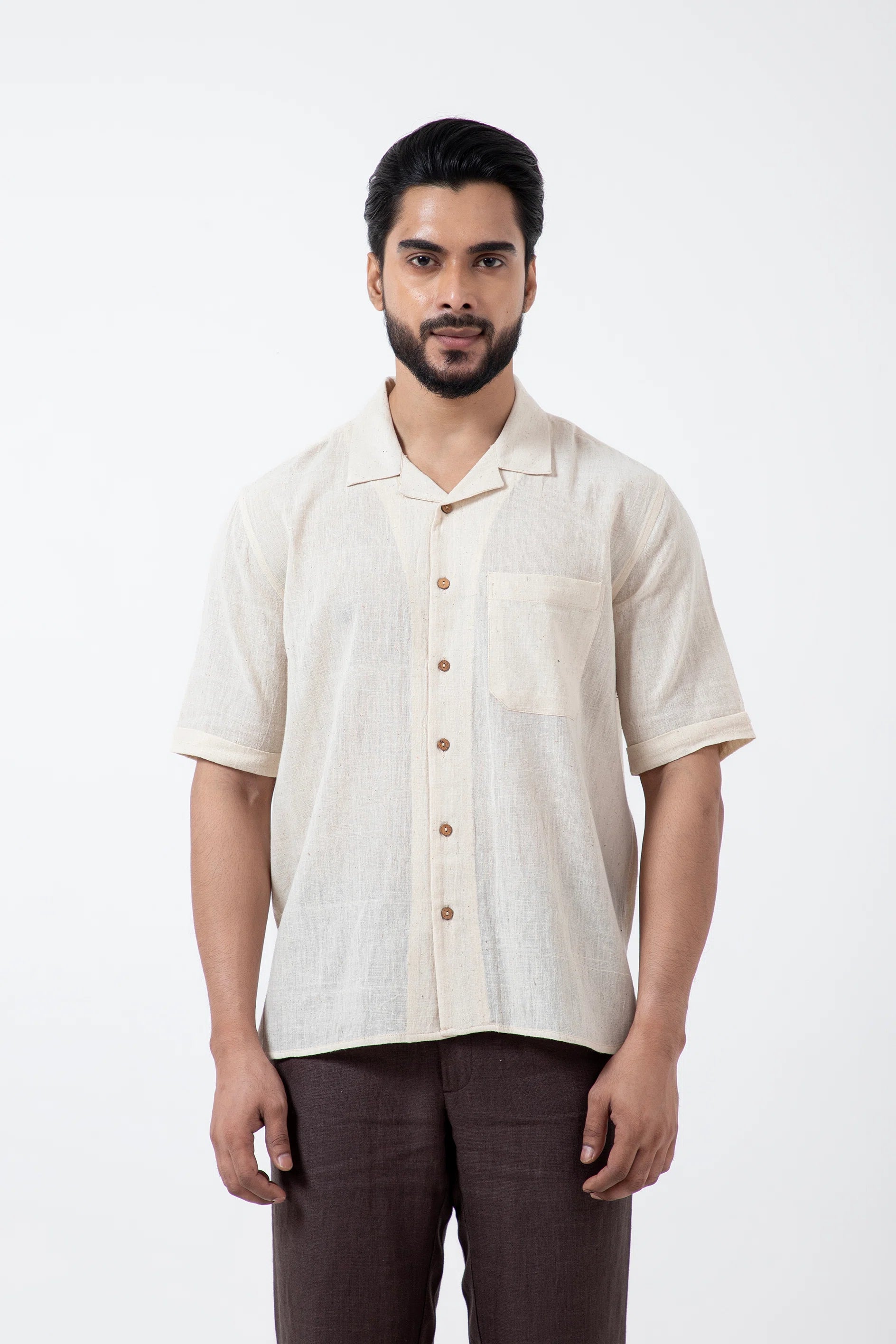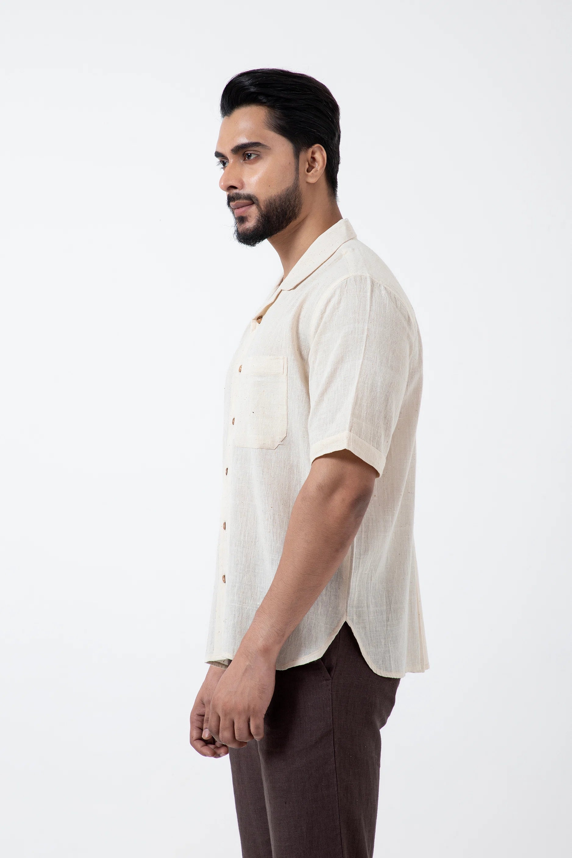 Key Feature: A classic camp collar shirt with relaxed half-sleeves and a patch pocket.