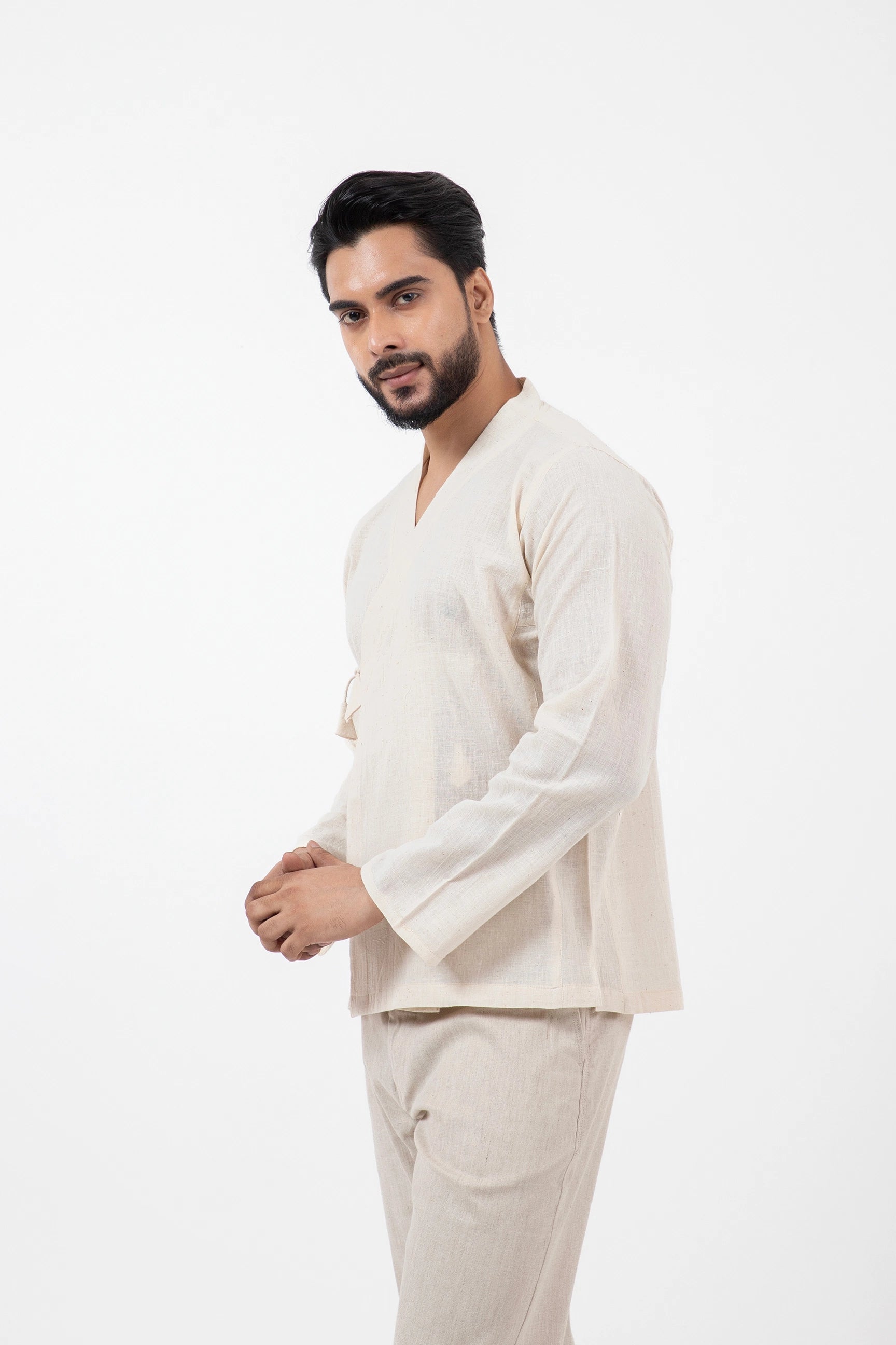 Key Feature: This is a wrap shirt. Its unique geometric cutouts are inspired by traditional Indian pattern marking which reduces fabric wastage.
