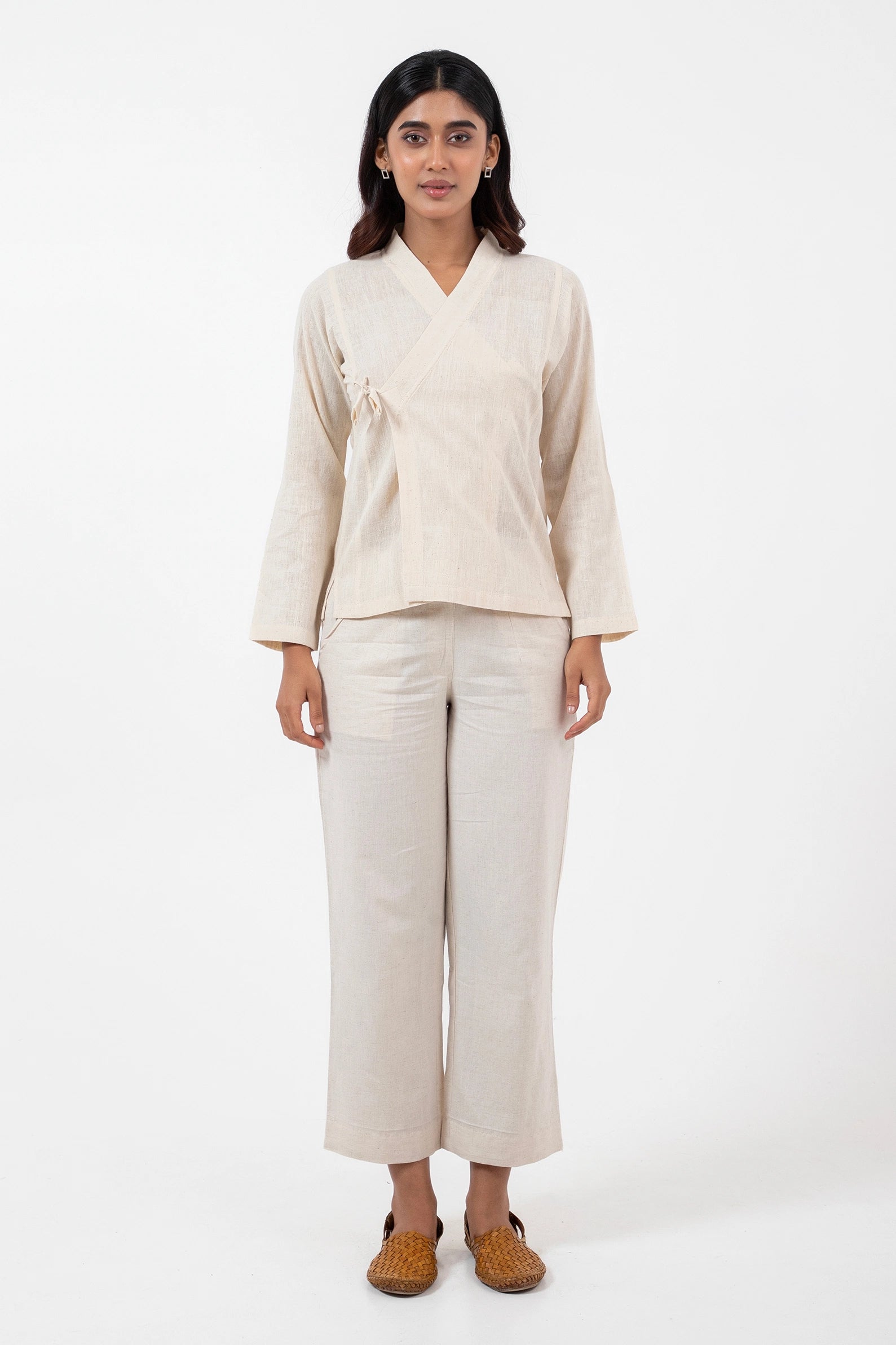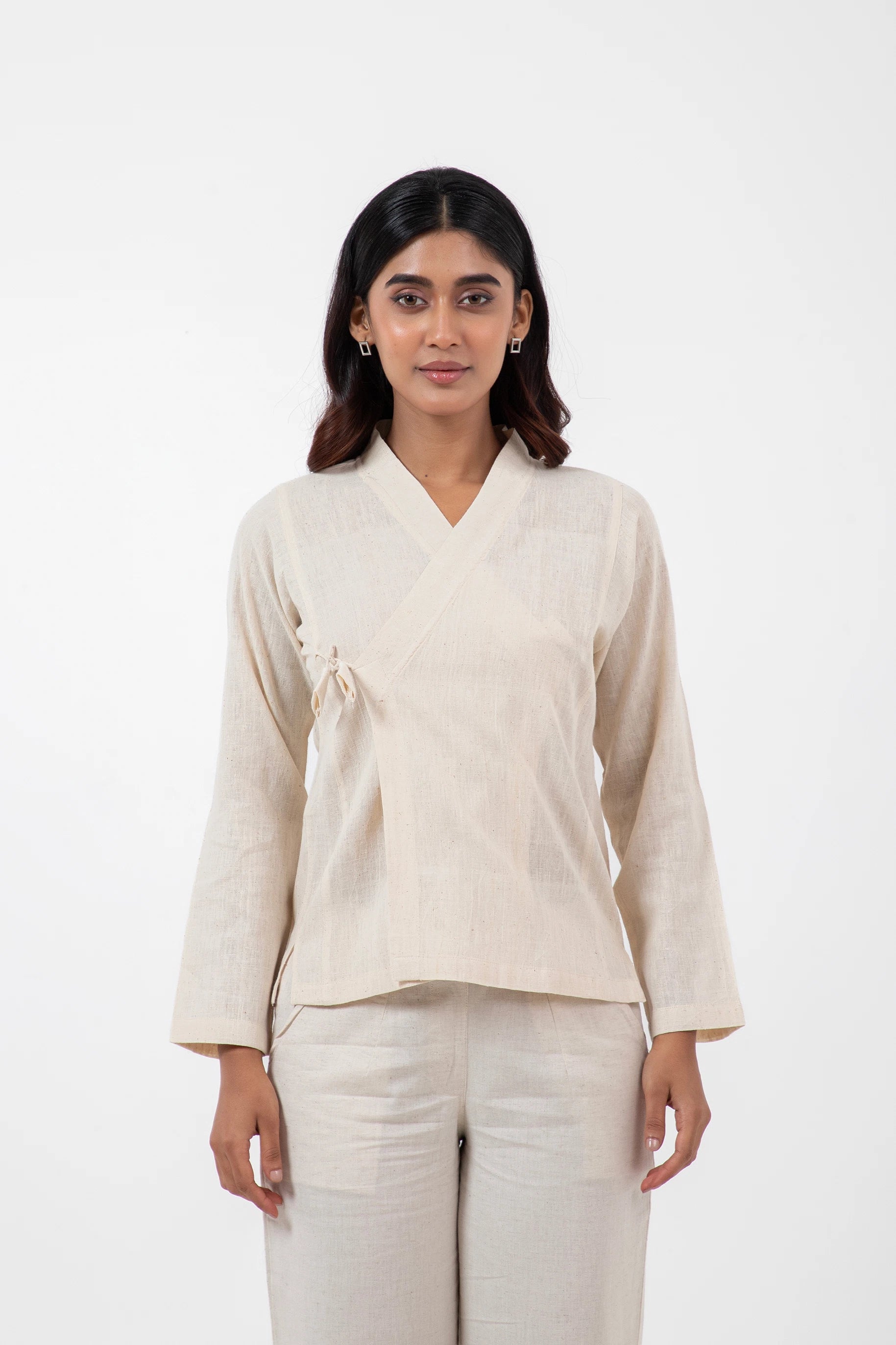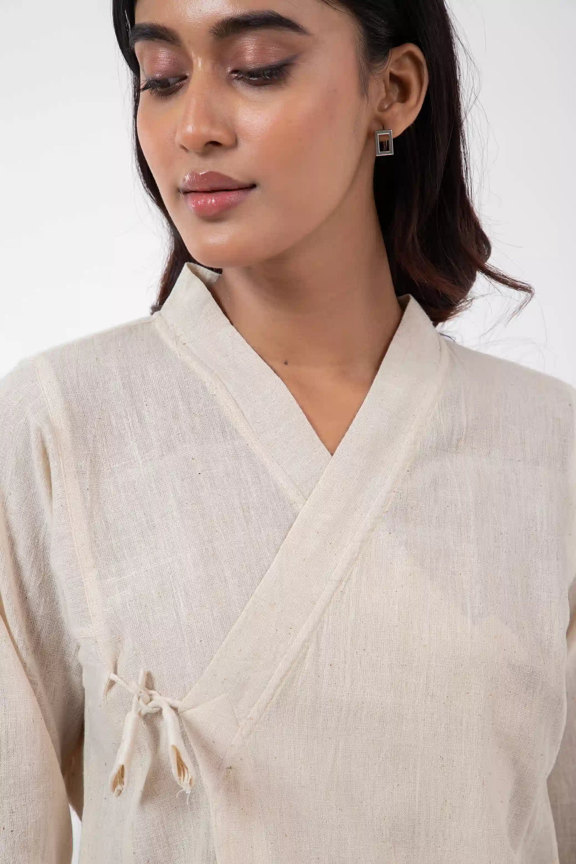 Key Feature: This is a wrap shirt. Its unique geometric cutouts are inspired by traditional Indian pattern marking which reduces fabric wastage.