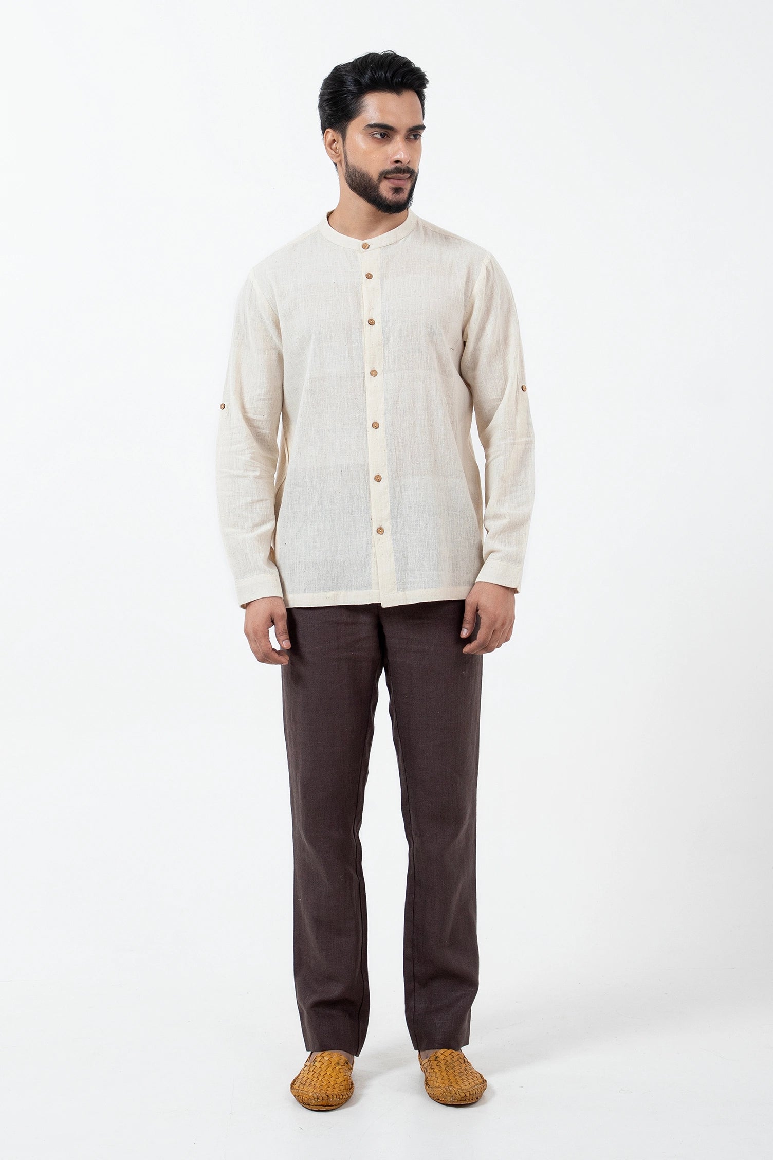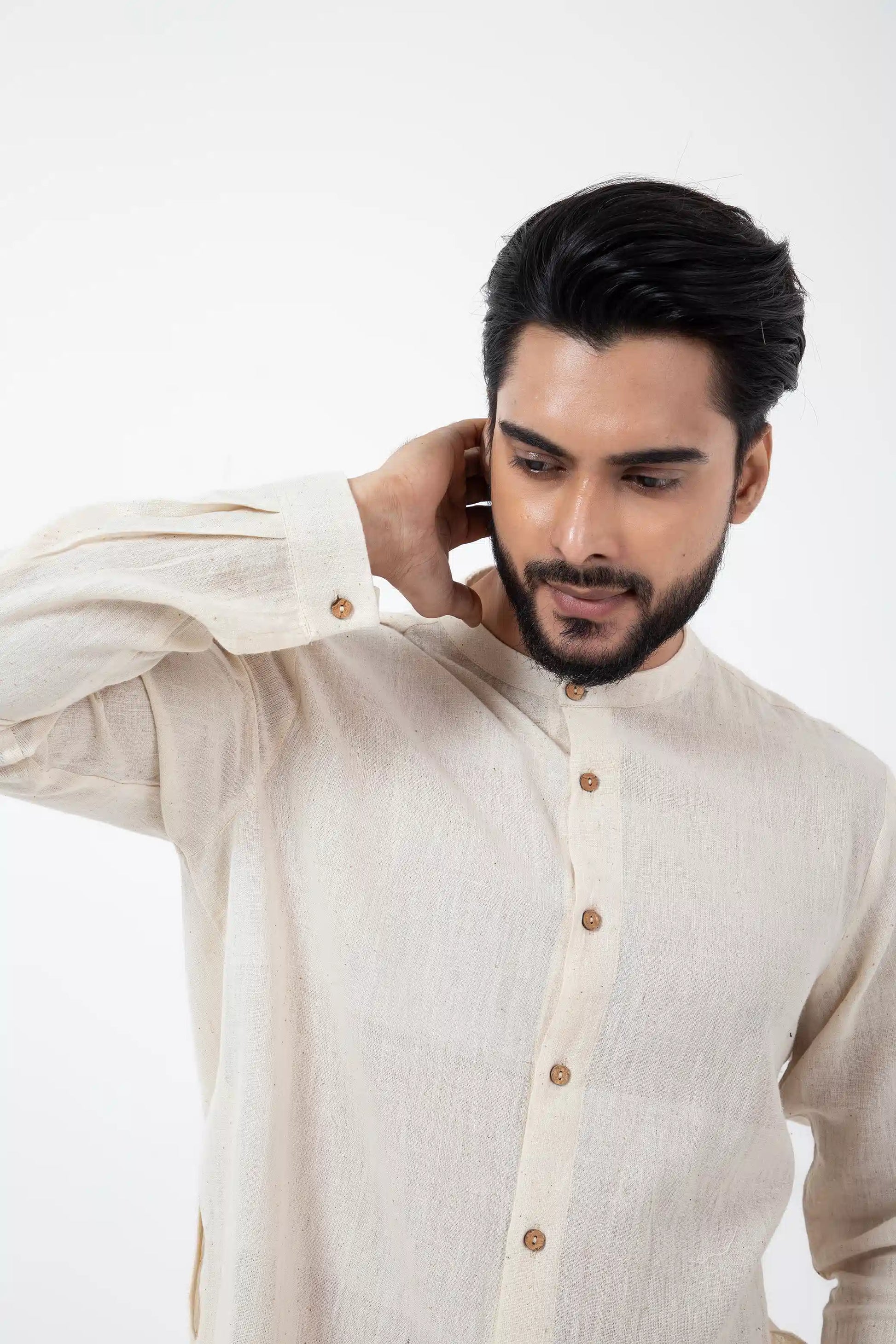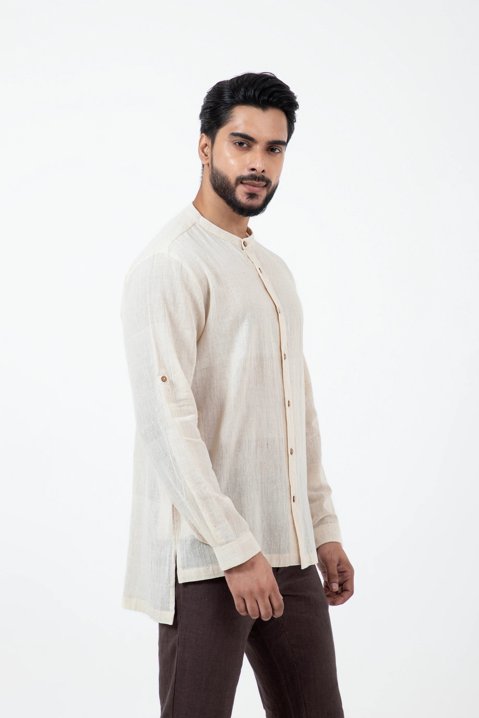 Key Feature: Kurta shirt with a high-low hem and side pockets. It features a foldable sleeve with a button and strap on the bicep for versatile styling.