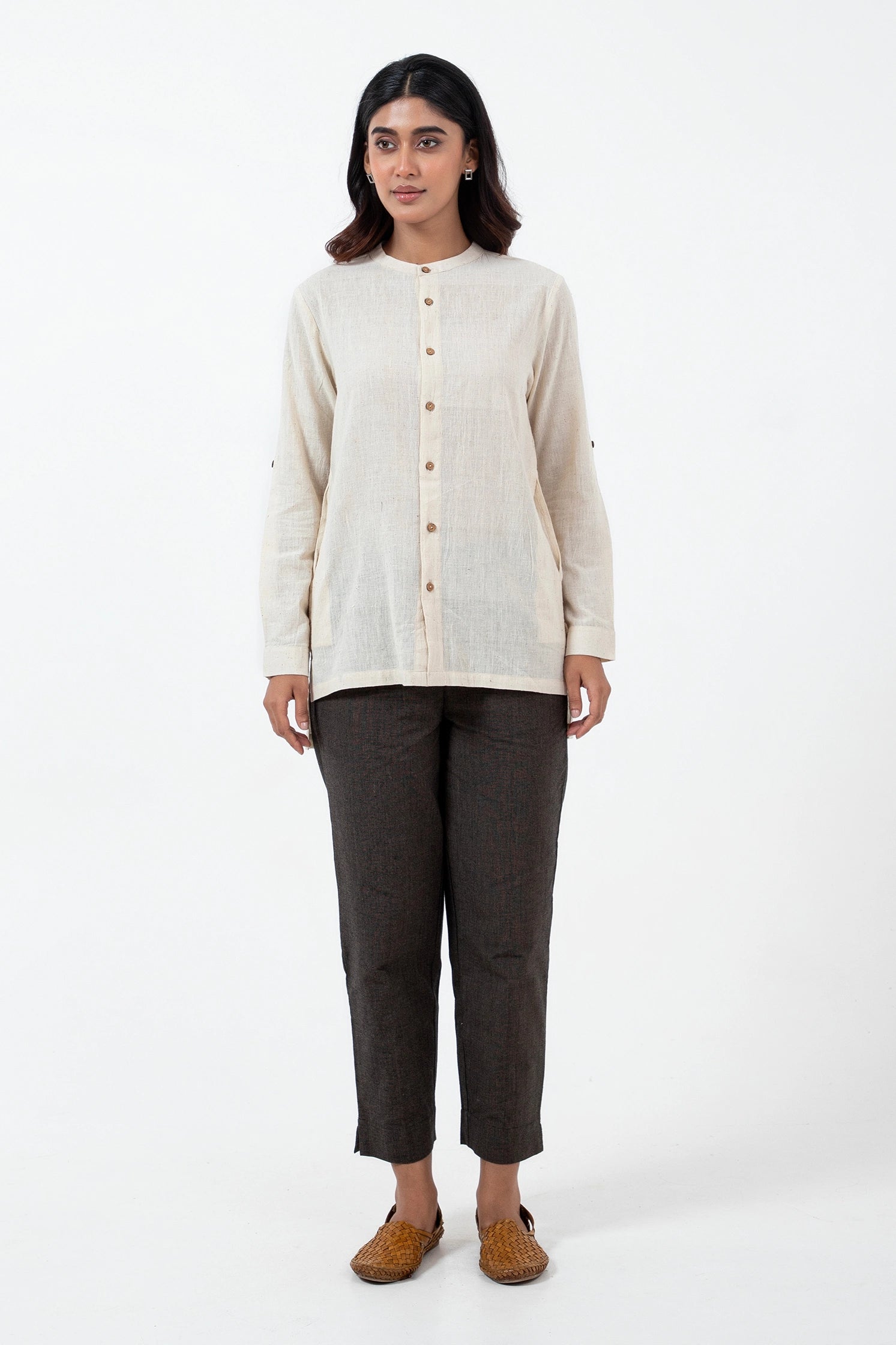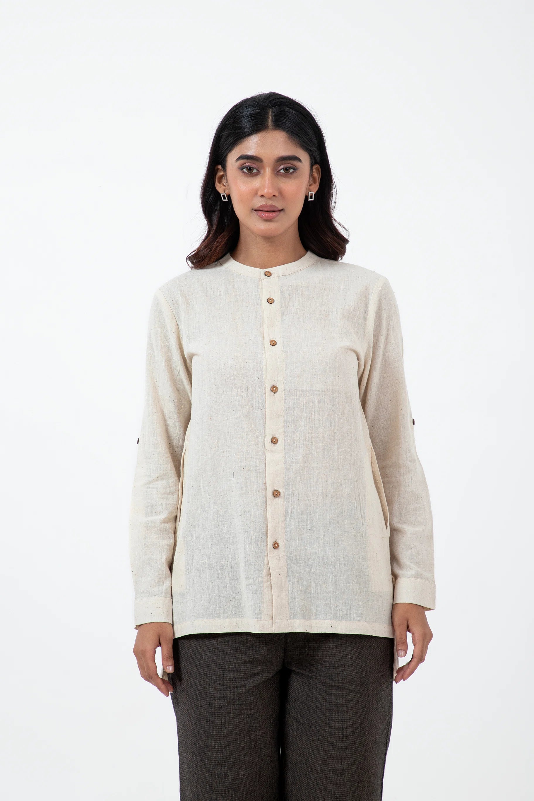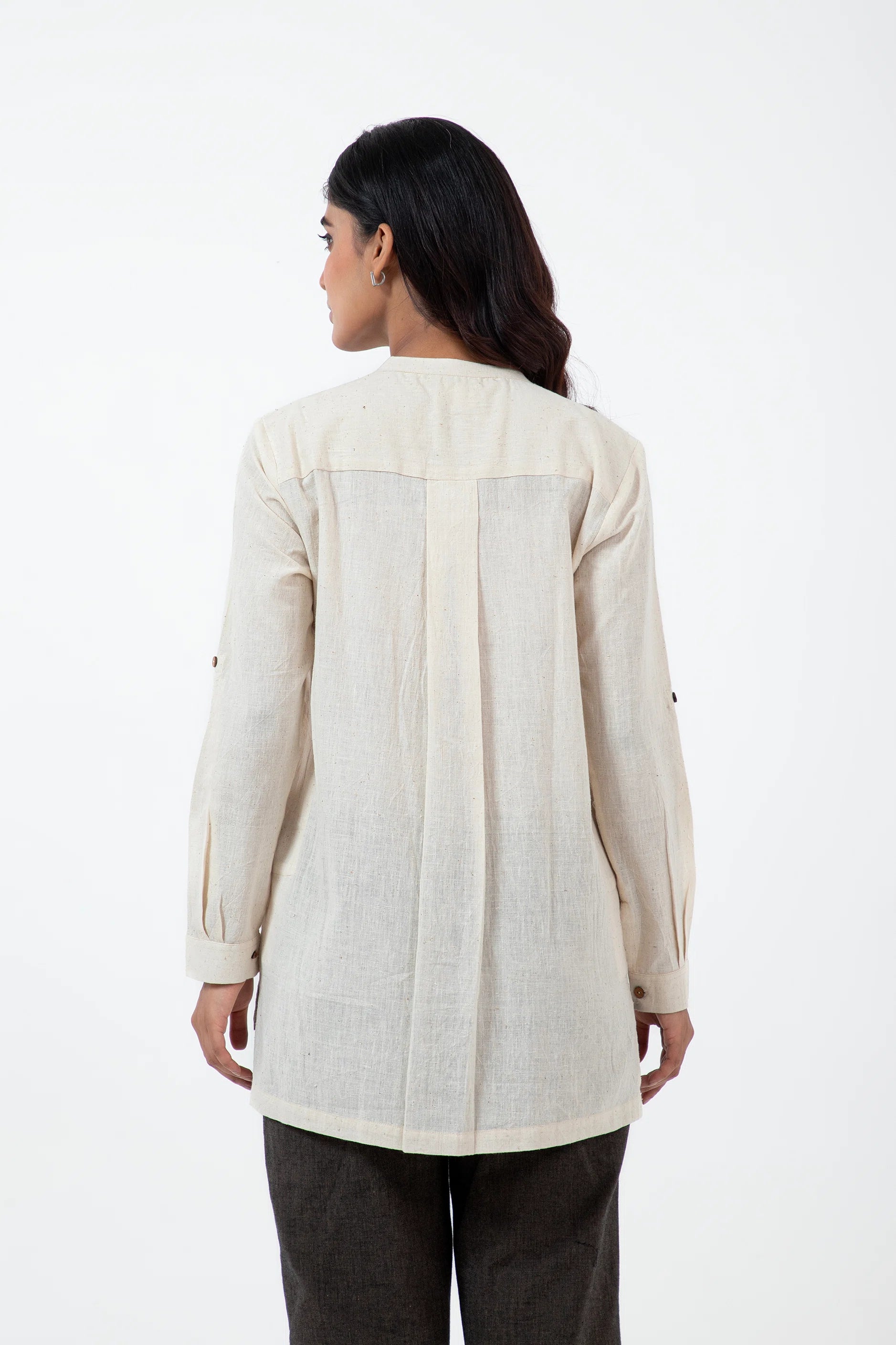 Key Feature: Kurta shirt with a high-low hem and side pockets. It features a foldable sleeve with a button and strap on the bicep for versatile styling.