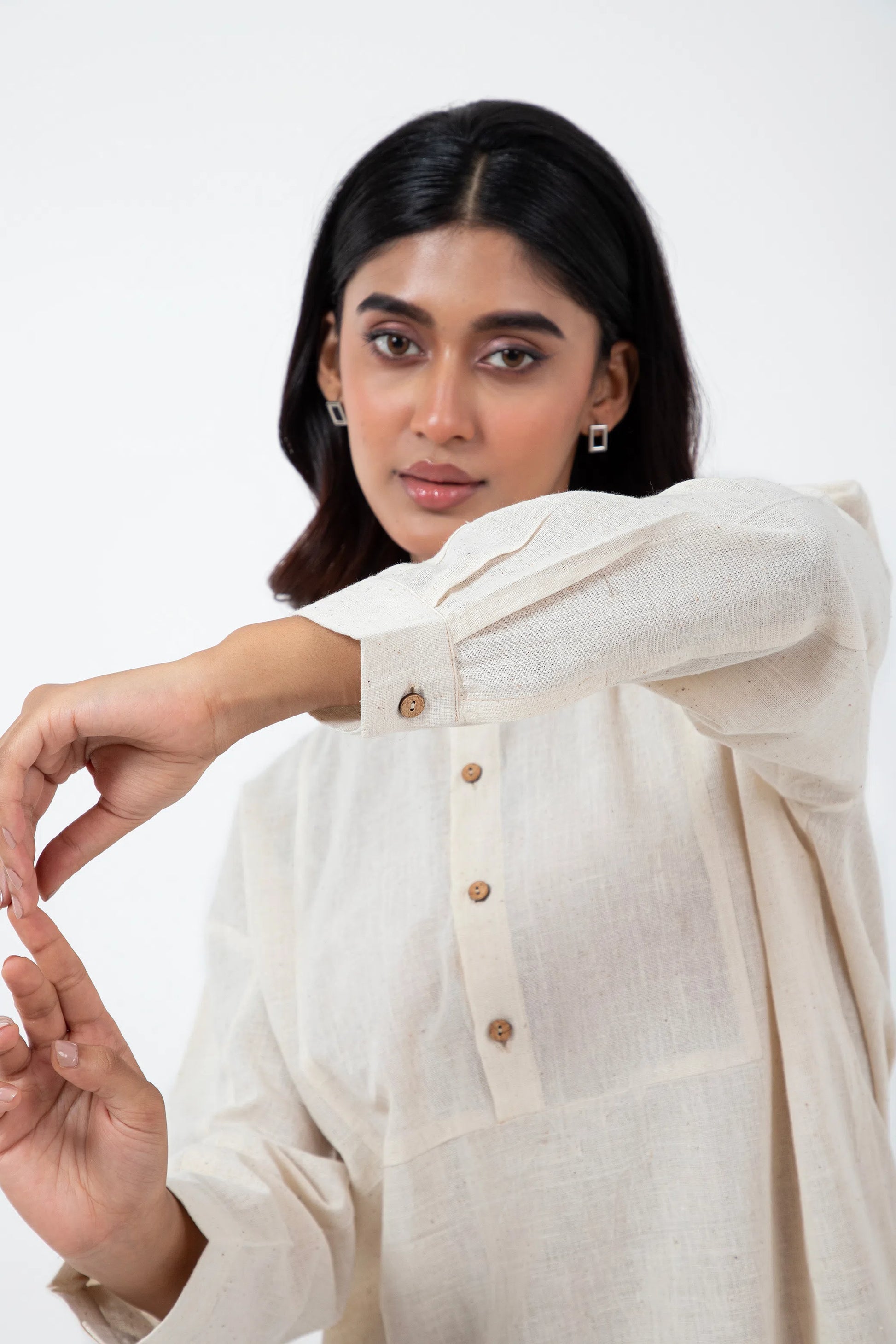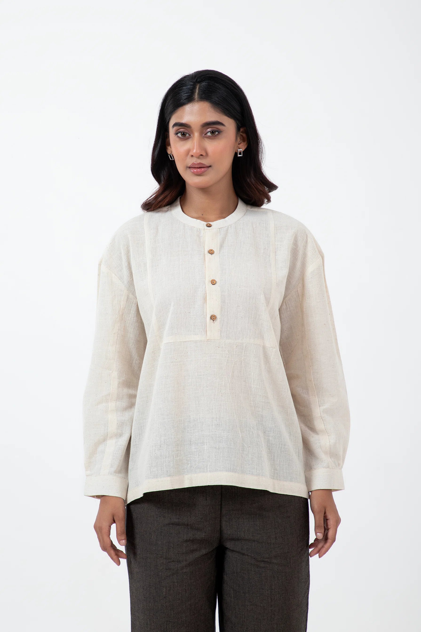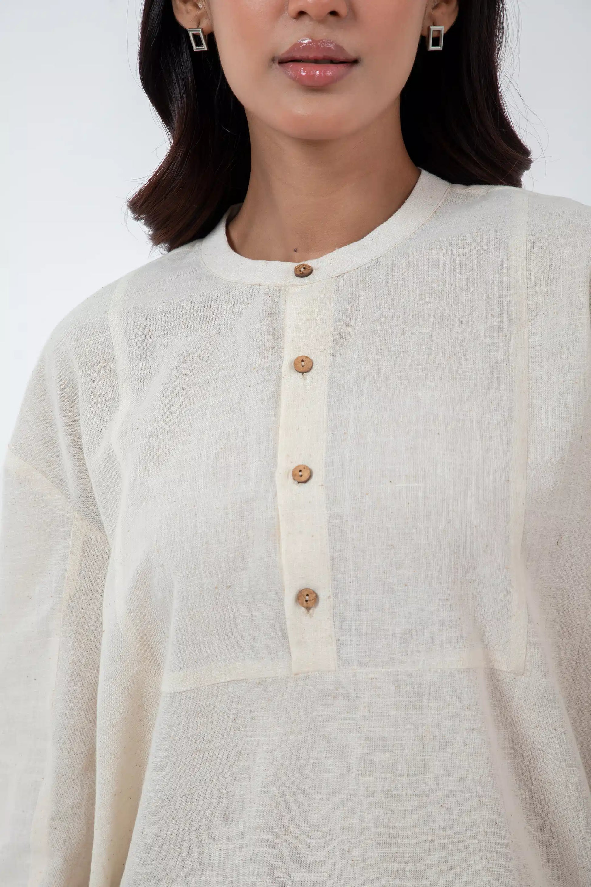 Key Feature: This is an oversized baggy shirt, designed with drop shoulders, a center front yoke, and a t-shirt placket for a relaxed yet stylish fit.