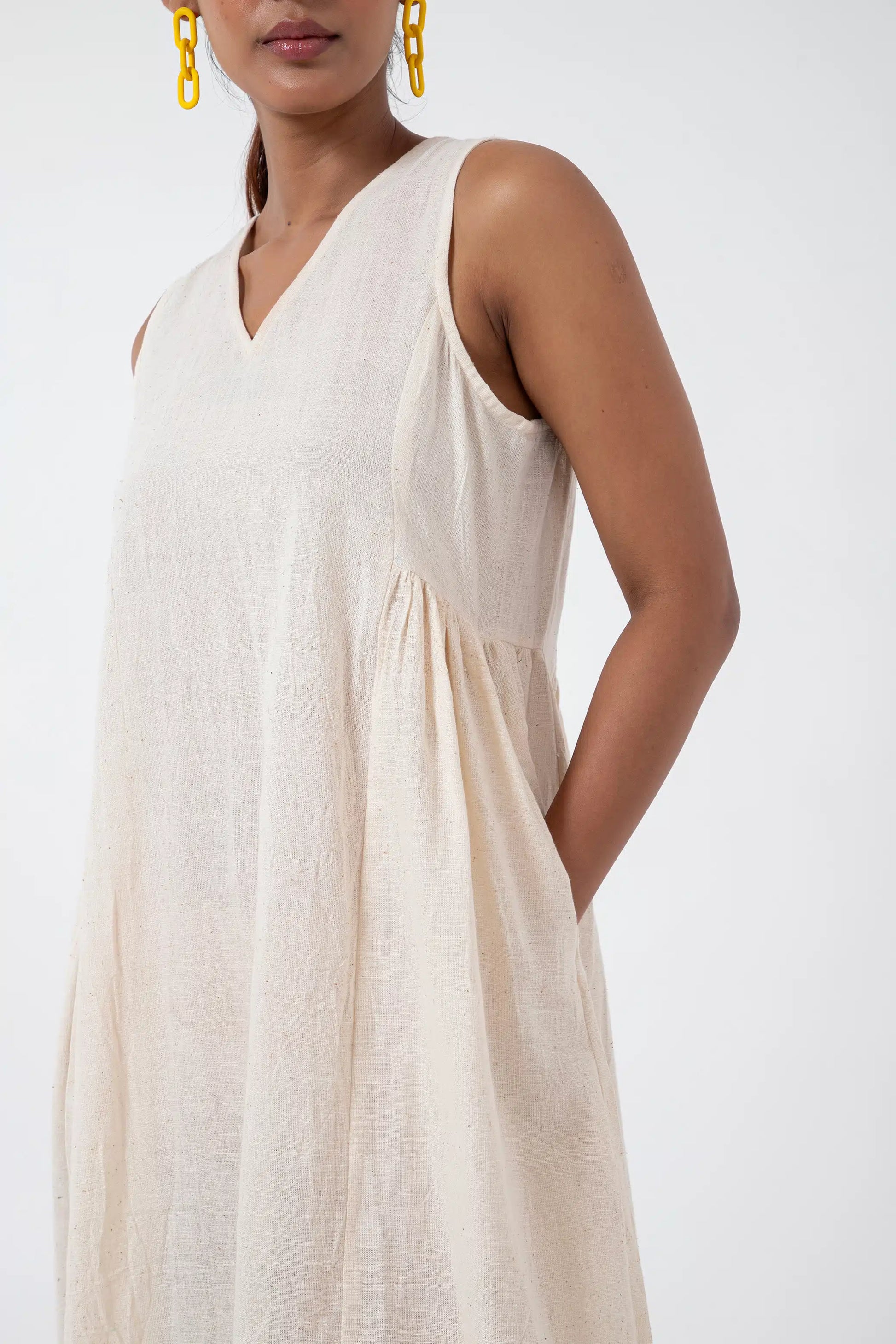 Key Feature: Sleeveless dress with side gathers designed to suit all body types and perfect for your summer wardrobe. It has convenient pockets to add functionality.