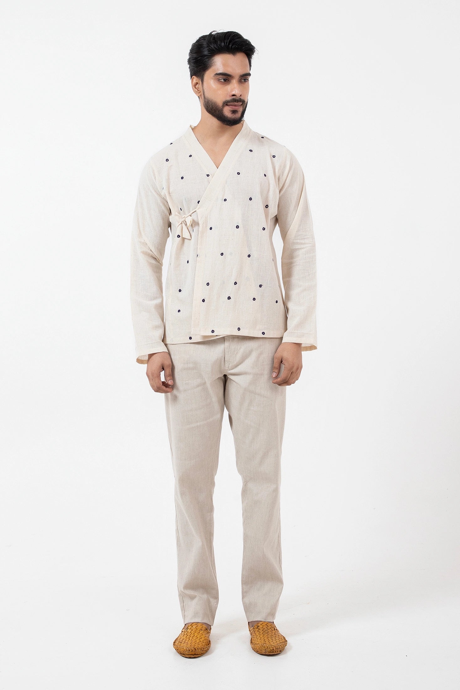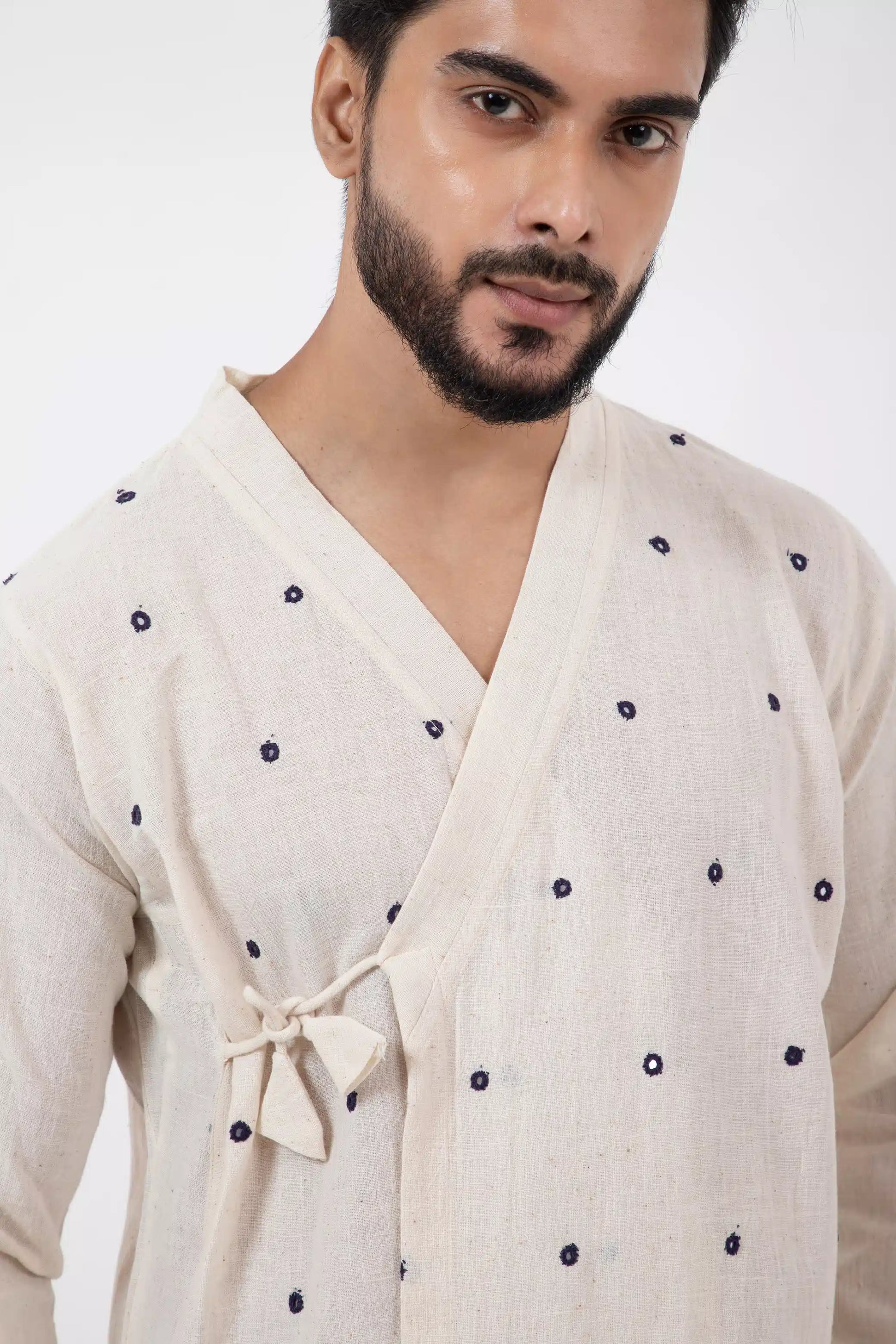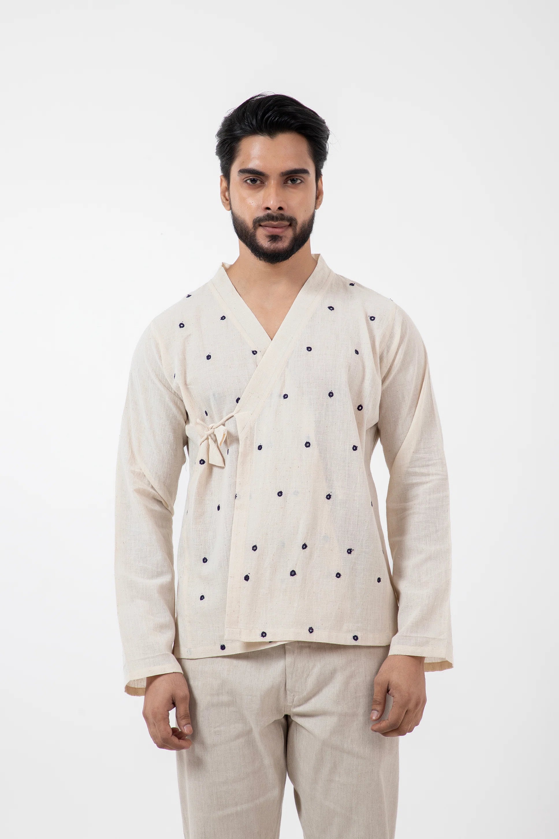 Key Feature: This is a wrap shirt. Its unique geometric cutouts are inspired by traditional Indian pattern marking which reduces fabric wastage.