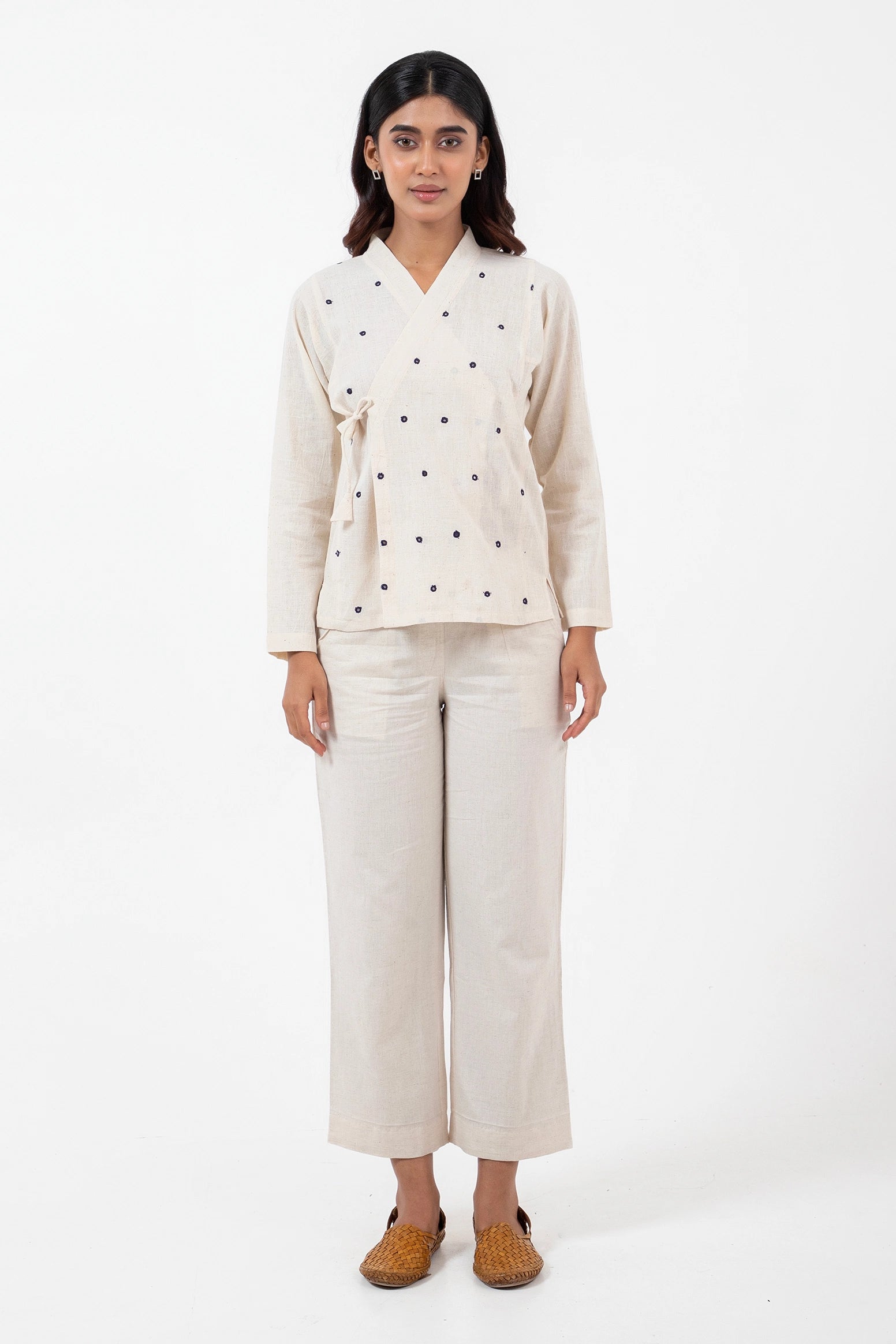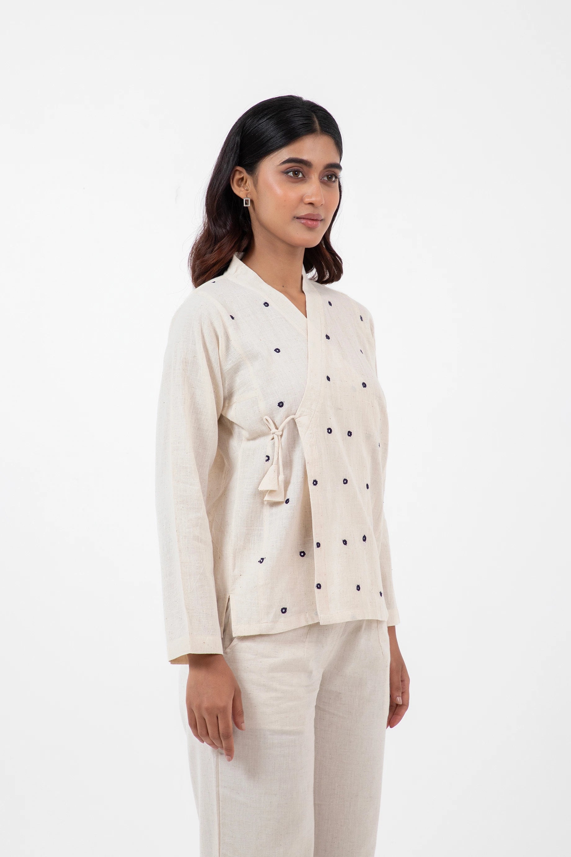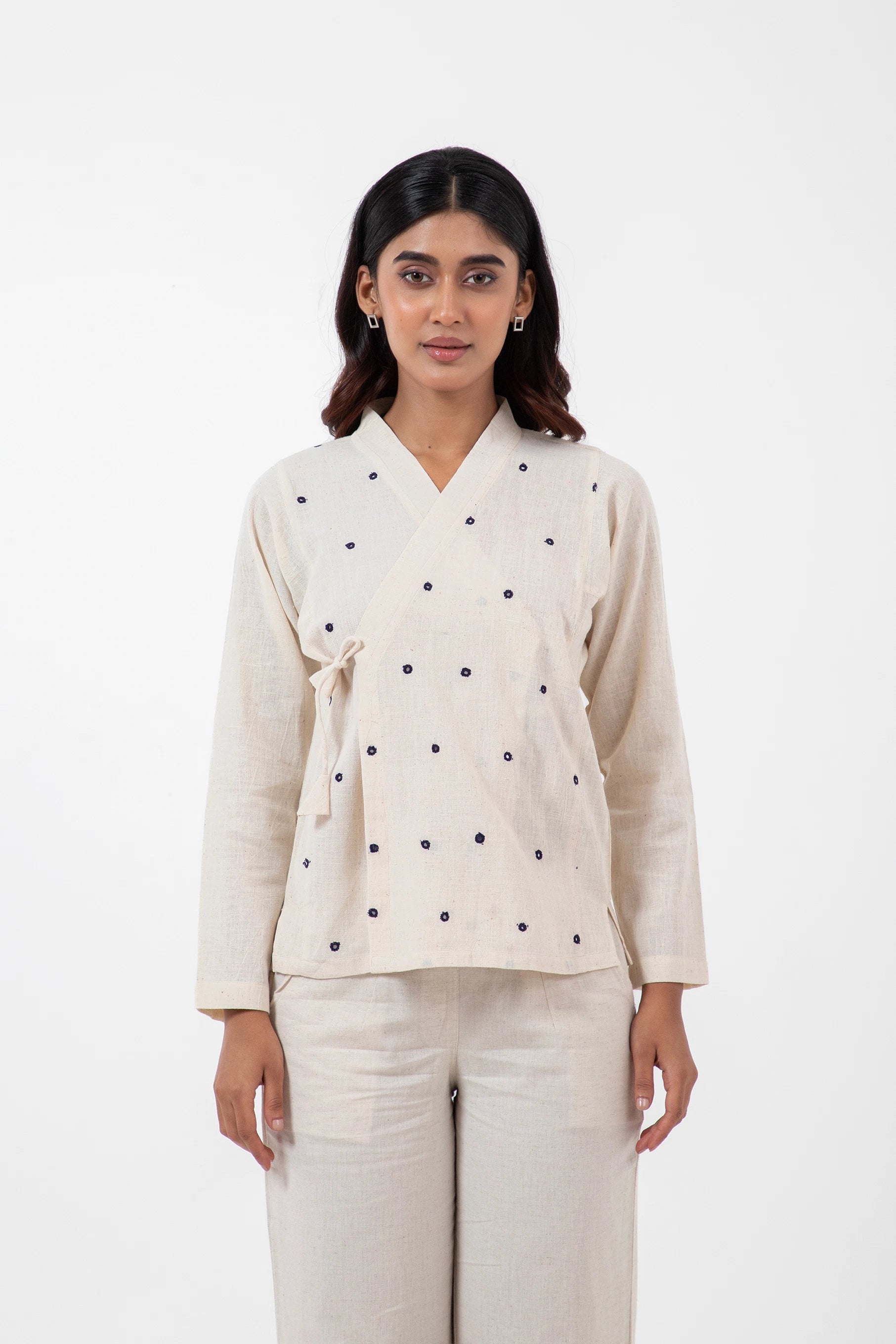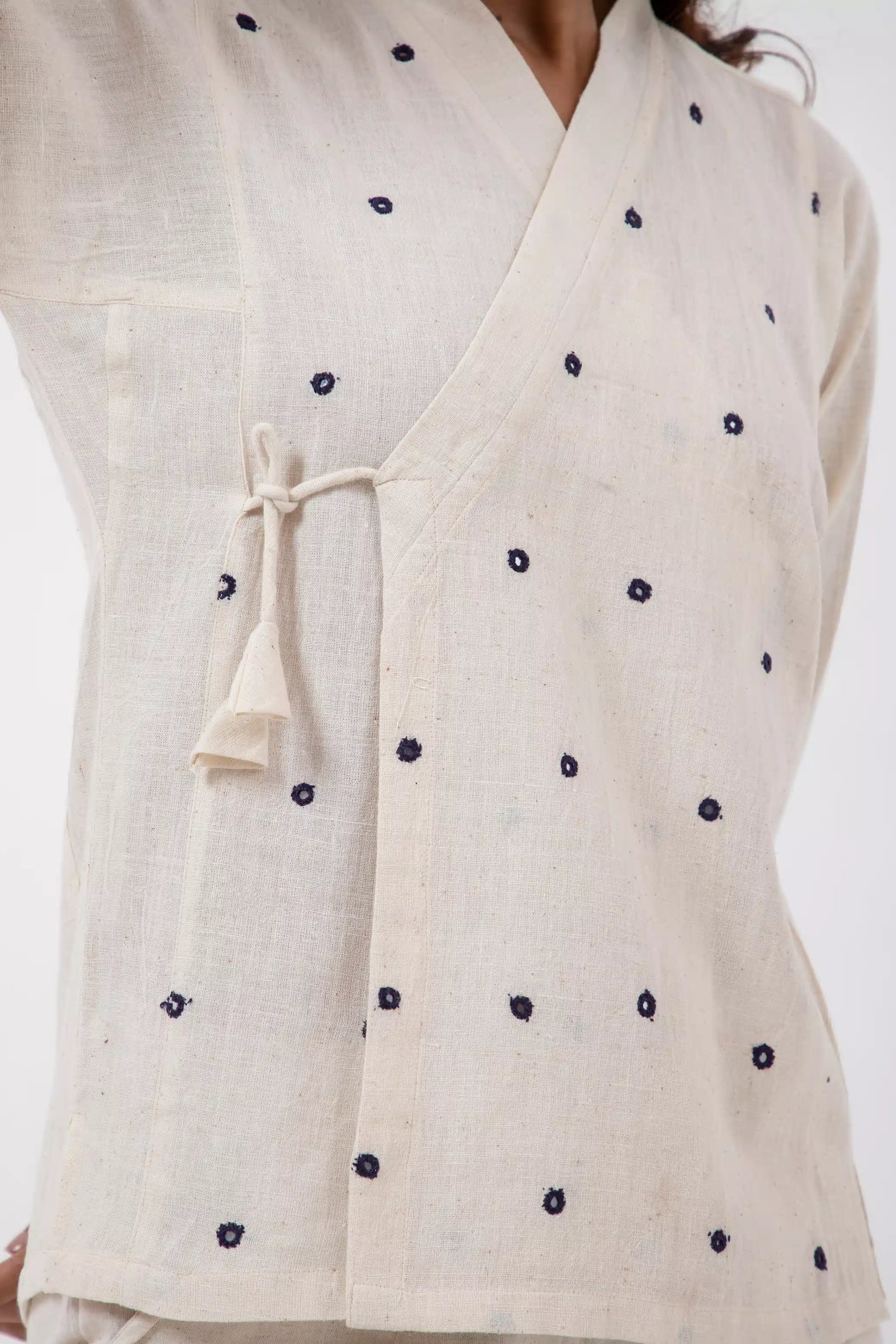 Key Feature: This is a wrap shirt. Its unique geometric cutouts are inspired by traditional Indian pattern marking which reduces fabric wastage.