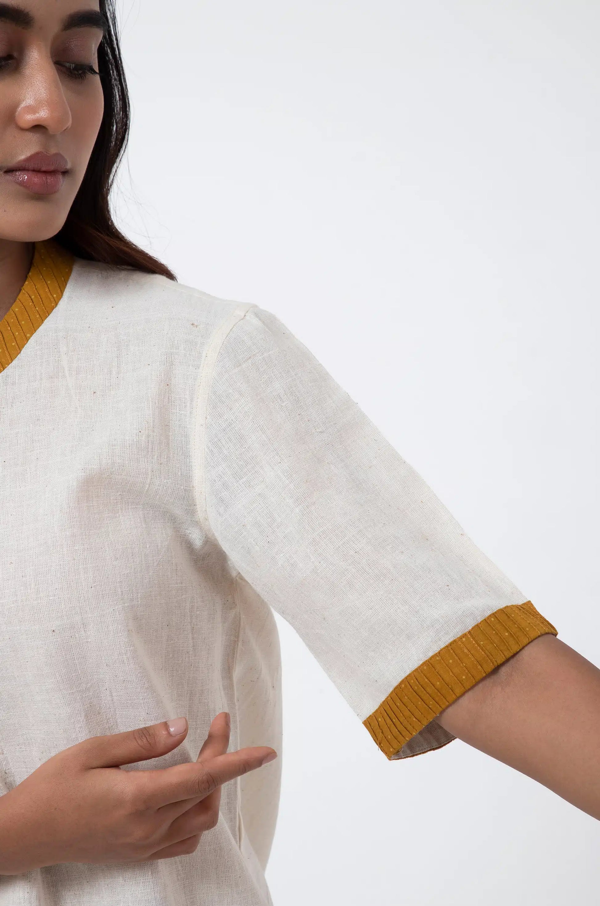 '- Handloom fabric made from 100% organic Kala cotton by Vankar artisans in Kutch, Gujarat.